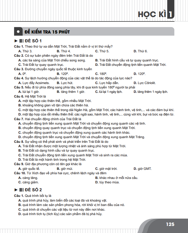 ĐẶC BIỆT, theo phân phối chương trình, sau khi học xong chủ đề nếu có đề kiểm tra 15 phút, 45 phút, đề kiểm tra học kì thì bên cuối chủ đề sẽ có dòng ghi chú (Ví dụ: “Tham khảo đề kiểm tra 15 phút số 1 – Học kì 1 Trang 128”) ; mục đích nhắc nhở học sinh làm đề, ôn luyện lại kiến thức để chuẩn bị cho bài kiểm tra trên lớp.