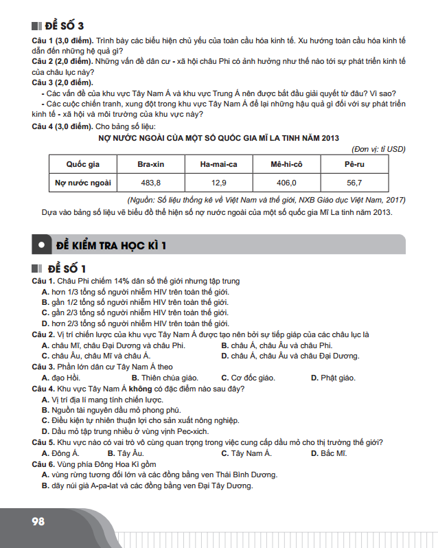 ĐẶC BIỆT, theo phân phối chương trình, sau khi học xong chủ đề nếu có đề kiểm tra 15 phút, 45 phút, đề kiểm tra học kì thì bên cuối chủ đề sẽ có dòng ghi chú (Ví dụ: “Tham khảo đề kiểm tra 15 phút số 1 – Học kì 1 Trang 128”) ; mục đích nhắc nhở học sinh làm đề, ôn luyện lại kiến thức để chuẩn bị cho bài kiểm tra trên lớp.