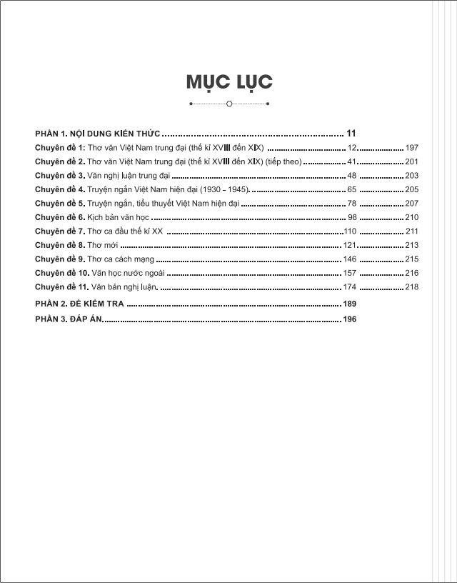 Sách được chia thành 3 phần: Phần 1 – Bài học, Phần 2 – Đề kiểm tra, Phần 3 – Đáp án. Cụ thể: