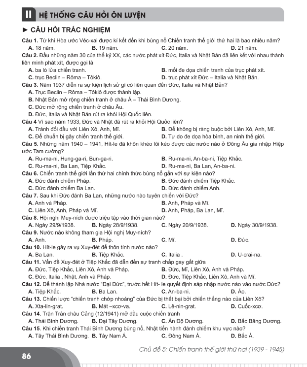 – Hệ thống câu hỏi ôn luyện: Bao gồm các câu hỏi trắc nghiệm và câu hỏi tự luận để các em áp dụng kiến thức phần lý thuyết vào làm bài tập, nắm vững nội dung bài học.