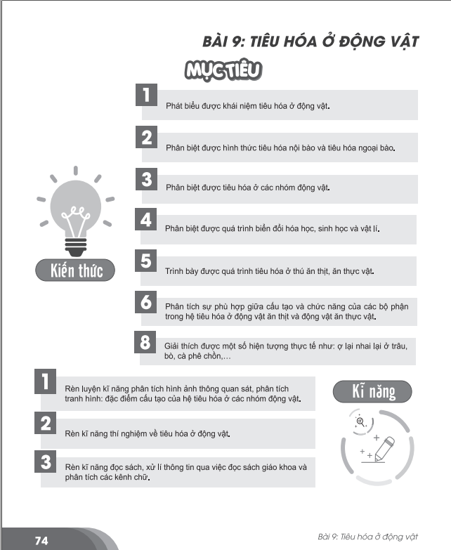 Những yêu cầu về kiến thức và kỹ năng được khái quát trước mỗi bài học giúp học sinh có cái nhìn tổng quan nhất; từ đó lên kế hoạch hành động để đạt được mục tiêu trước khi học.