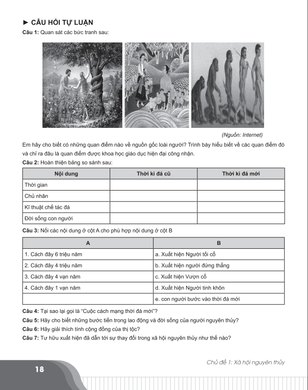 Mục tiêu bài học trích từ Chủ đề 1: Xã hội nguyên thủy.