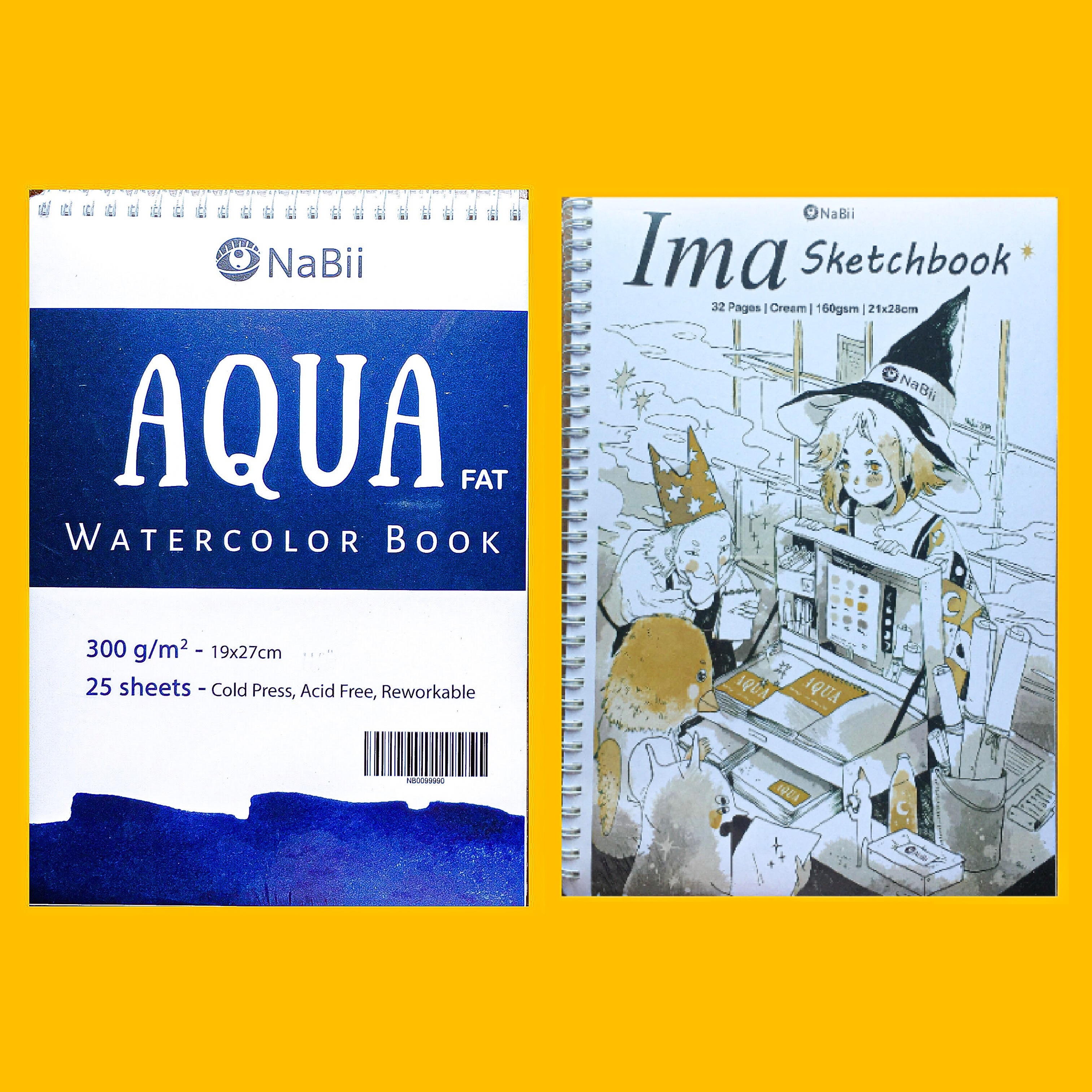 Combo Sổ vẽ màu nước chuyên nghiệp Nabii Aqua Fat A4 và Ima sketchbook vẽ phác thảo A4