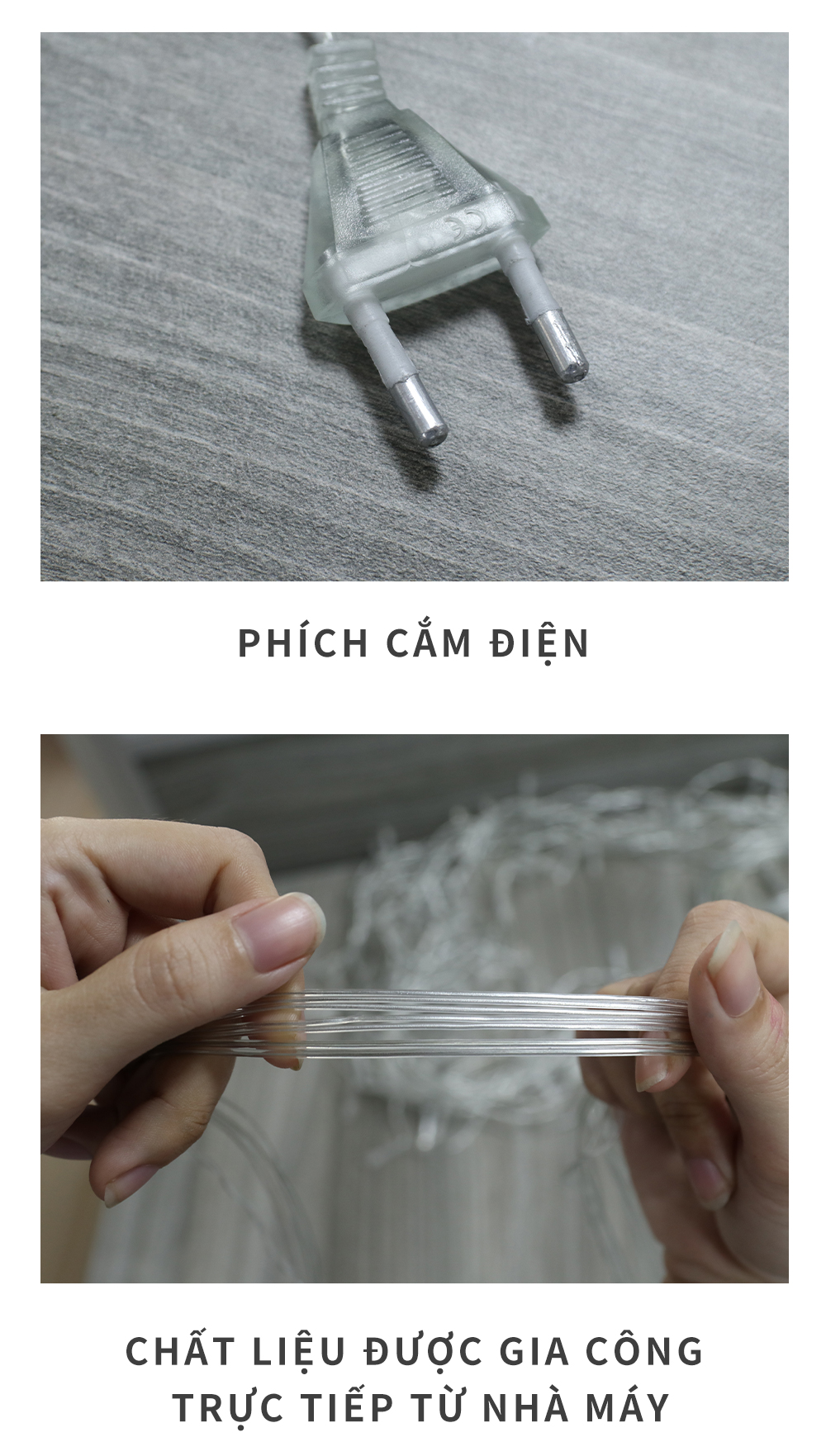 Mỗi bộ đèn rèm đều có đầu nối để có thể nối nhiều bộ lại với nhau.