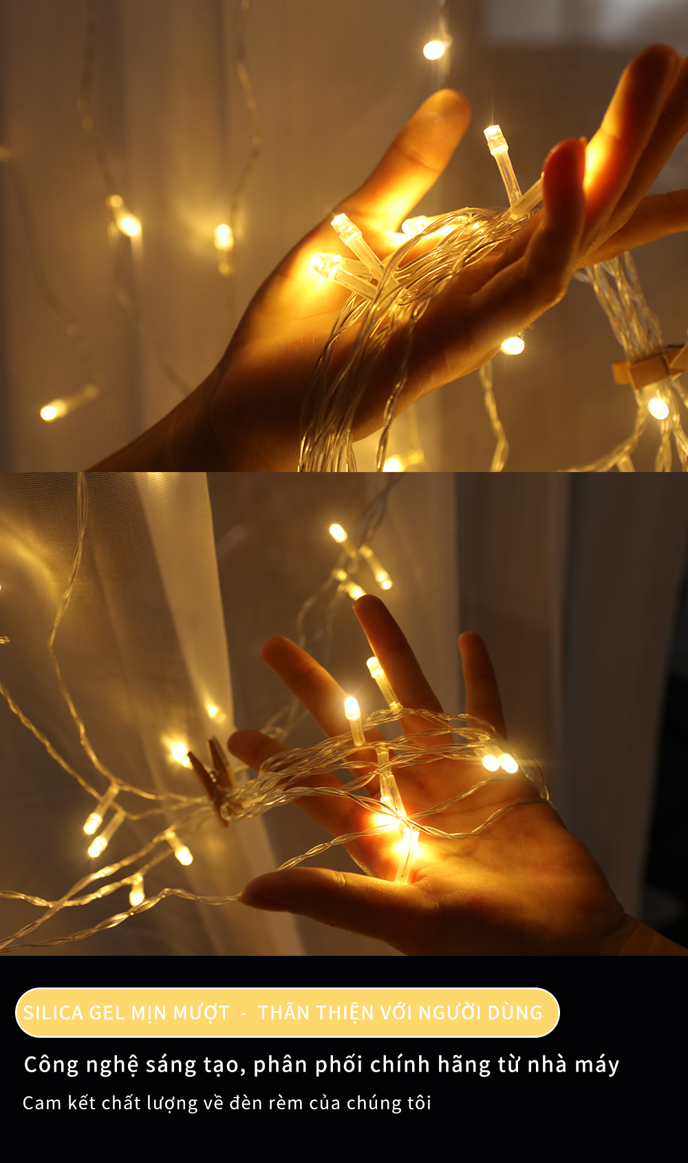 Mỗi bộ đèn rèm đều có đầu nối để có thể nối nhiều bộ lại với nhau