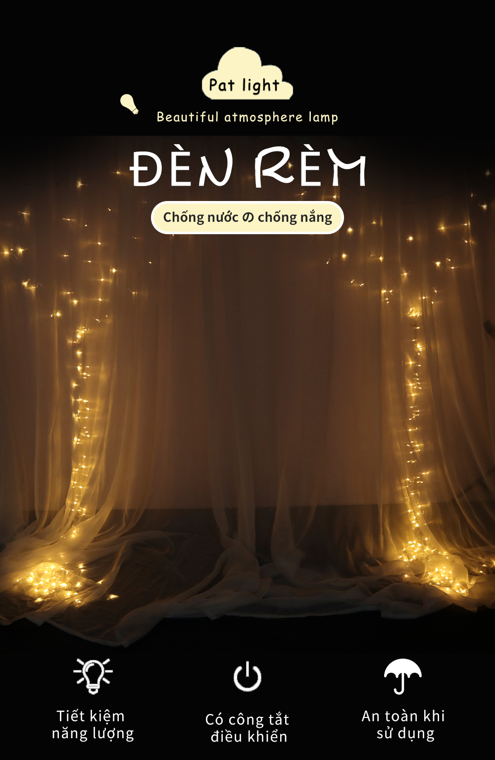 Đèn rèm - phụ kiện trang trí sinh nhật, trang trí ngày cưới, ngày kỉ niệm - đèn rèm trang trí cho không gian tiệc, phòng ngủ hay những không gian yêu thích - đèn rèm sử dụng điện