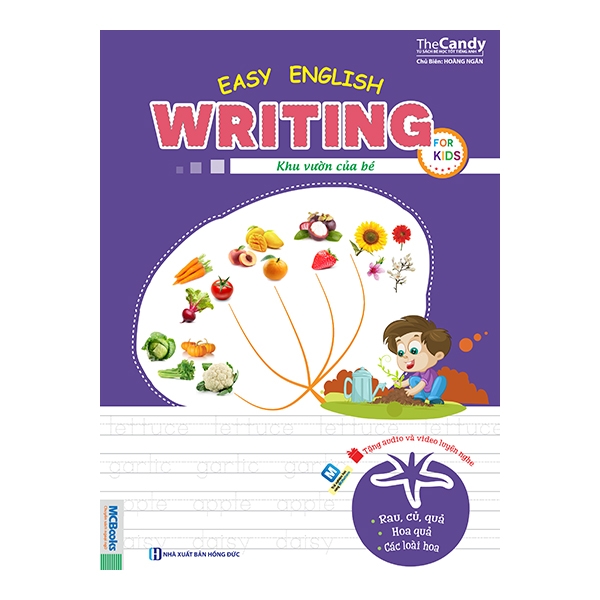 “Easy English Writing for Kid – Khu vườn của bé” là cuốn tập viết giúp các bé trong độ tuổi mầm non vừa học thêm nhiều từ vựng tiếng Anh, vừa giúp các bé luyện viết đúng viết đẹp lại rèn luyện thêm được kỹ năng nghe thông qua ứng dụng. MCBooks hy vọng rằng bộ vở tập viết này sẽ giúp các bé học tiếng Anh và tăng thêm tình yêu với môn ngoại ngữ này.