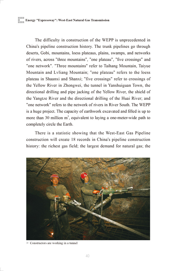 The West-East Gas Pipeline is a large artery transporting China's natural gas resources. It undertakes the task of coordinating the unbalanced development between Eastern China and Western China and to the transporting of natural gas resources from the west to the east so as to ensure thesustainable development of resources and of the environment in China. It is an energy corridor stretching from Eastern China to Western China. Its construction not only reflects China's disposition and determination, but also represents China's comprehensive national strength.This book leads you to an understanding of the West-East Gas Pipeline and of how this "dragon" lurking in the underground can boost China's economy.