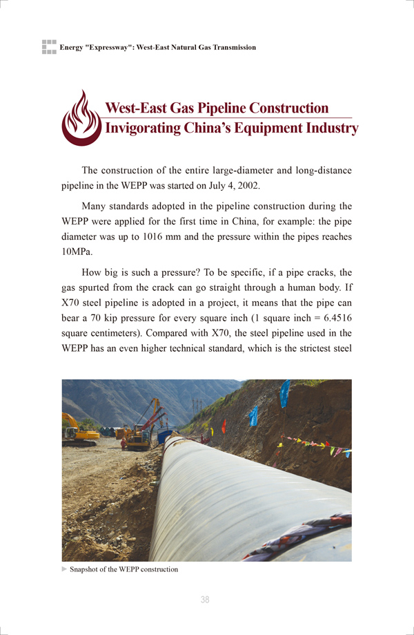 After official operation began for this huge energy artery of the west-east gas pipeline across the whole country, the development potential of various industries including natural gas processing, petrochemicals, building materials, steel, civil installation and machinery and electronics has been stimulated, thus forming a new economic growth belt.