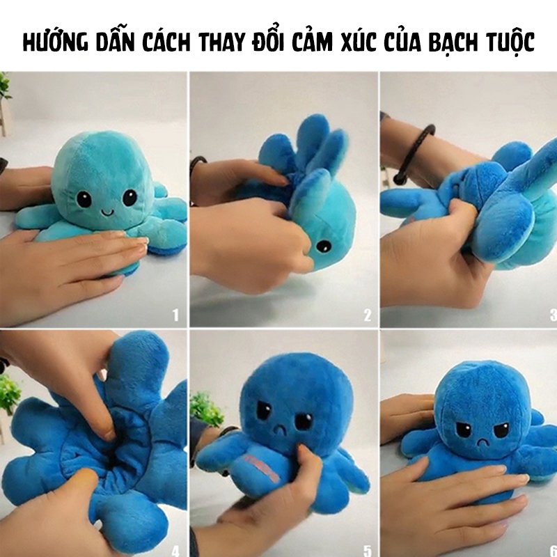 Hình dáng: Bạch tuộc nhồi bông 2 mặt có hình dáng dễ thương có thể thay đổi cảm xúc linh hoạt, chân thật nhờ thiết kế gập của bạch tuộc nhồi bông