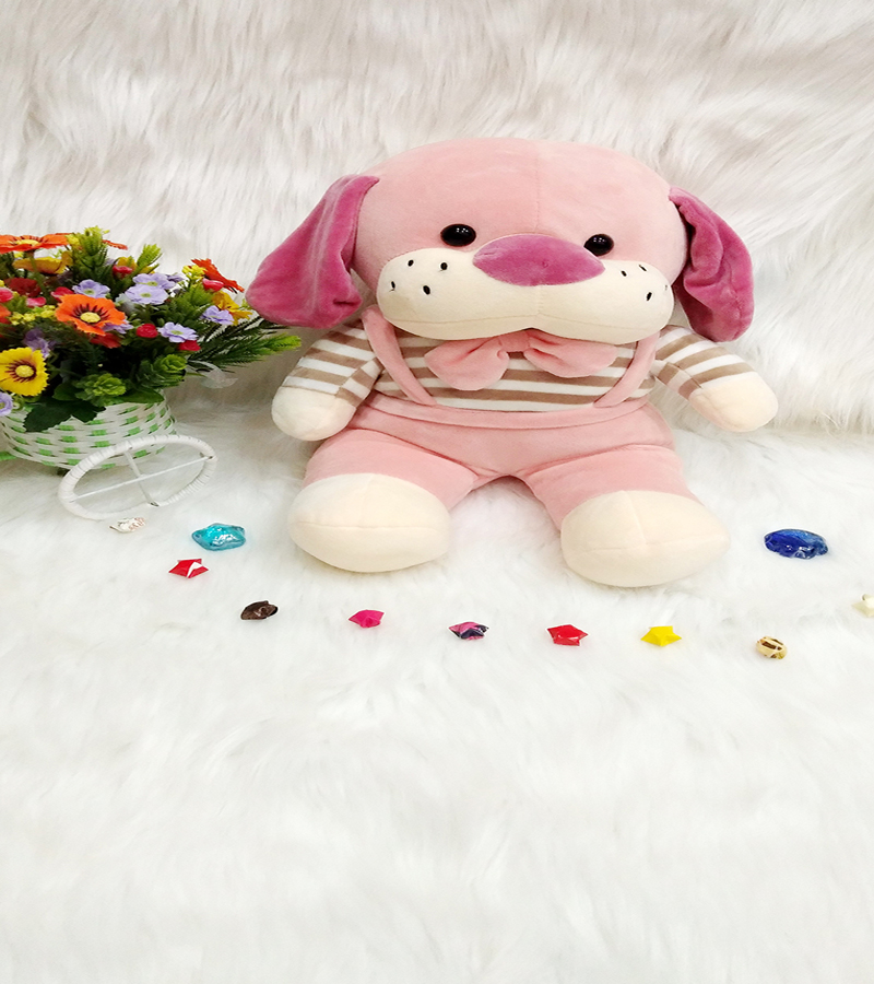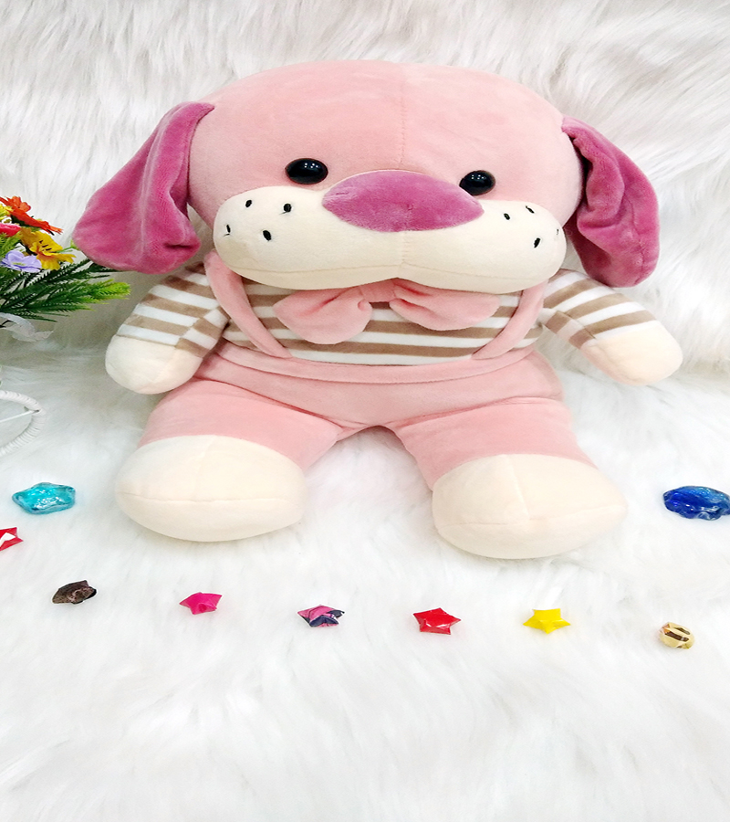 Gấu Bông CHÓ LULU HỒNG ÁO COMLÊ THẮT NƠ
