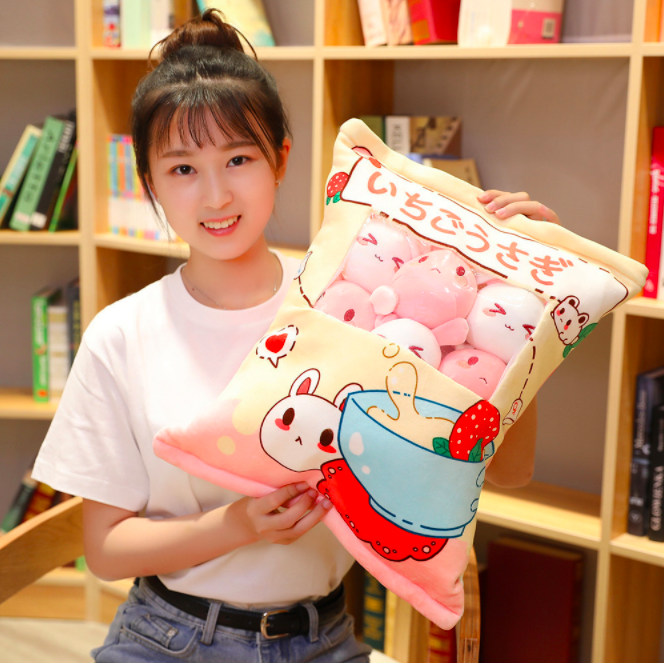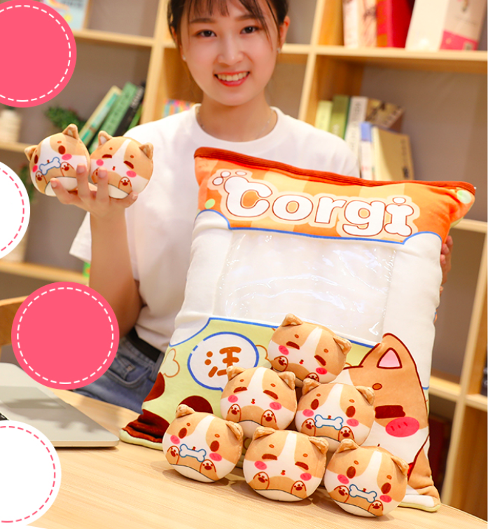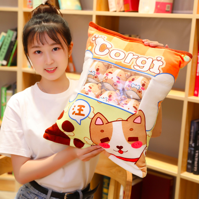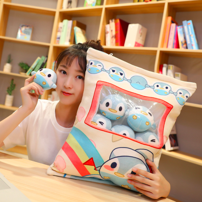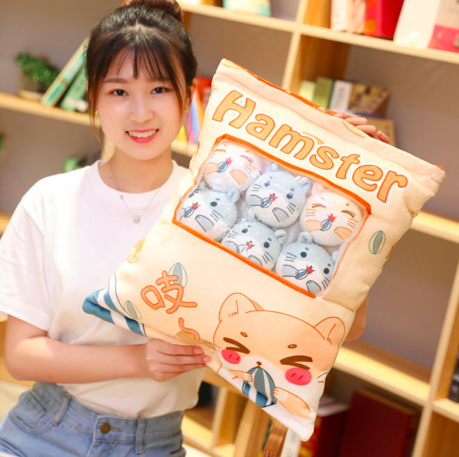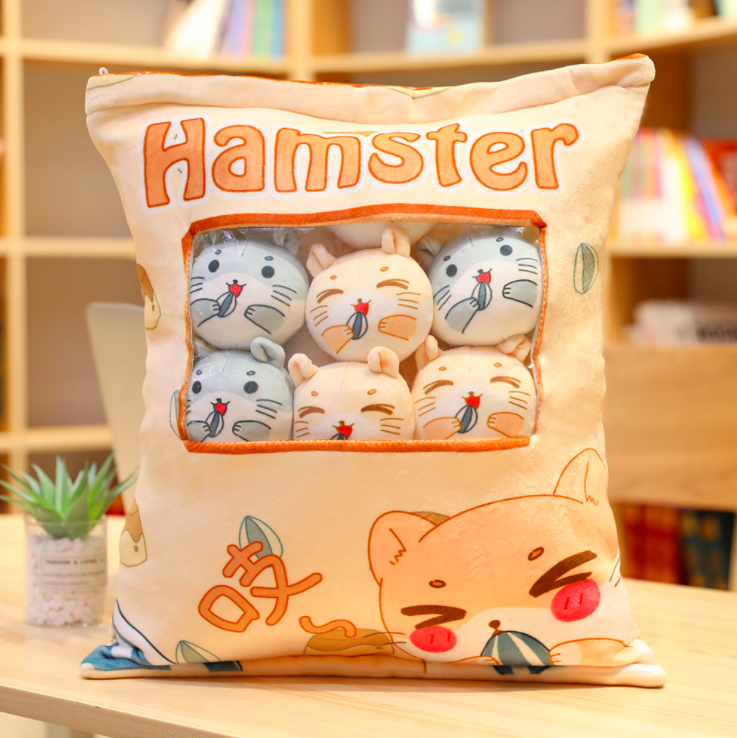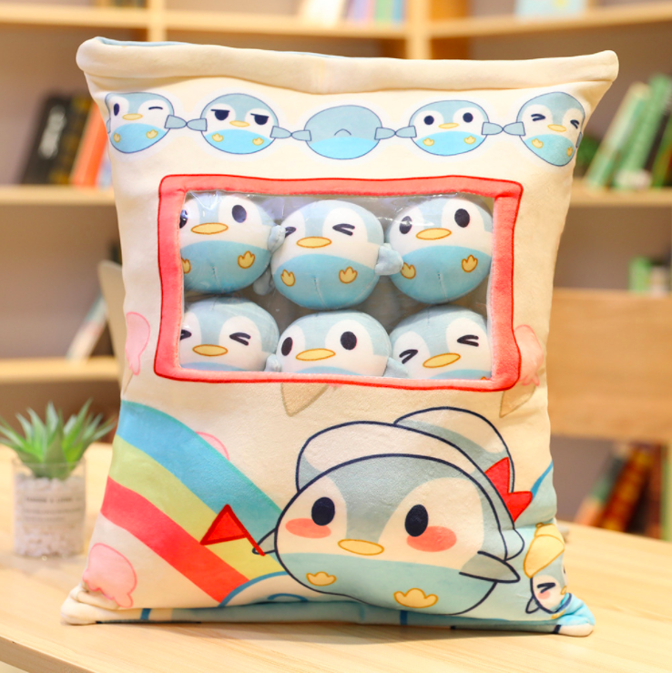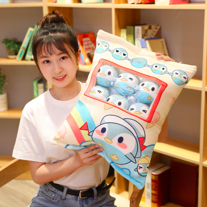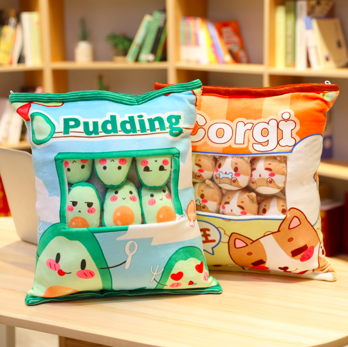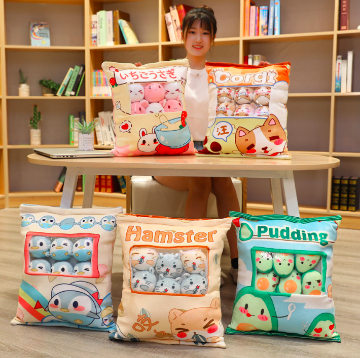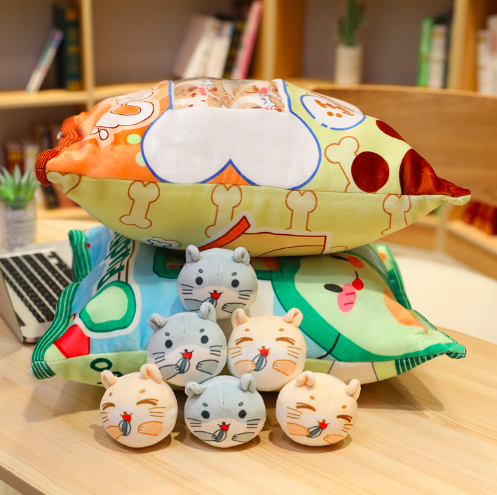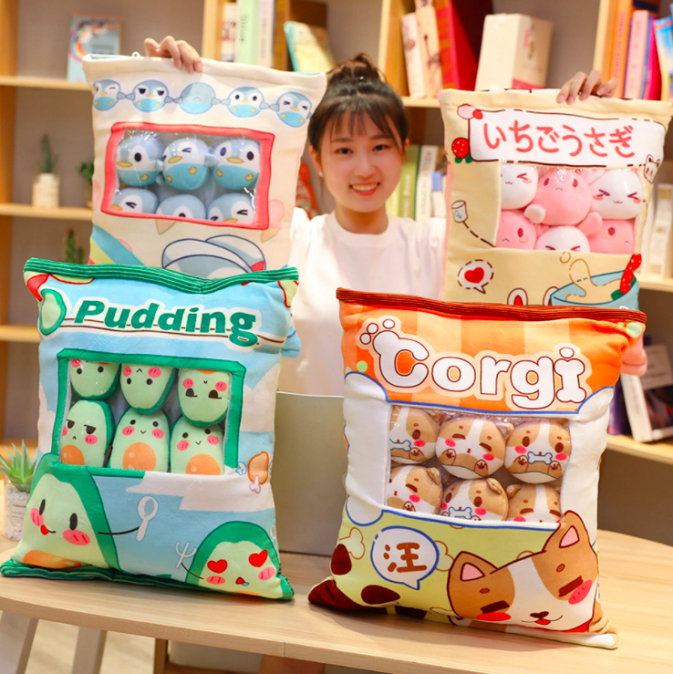 Gối bông GÓI BÁNH SNACK CÓ DÂY KÉO KÈM 8 BÉ GẤU BÔNG NHỎ BÊN TRONG siêu ngộ nghĩnh (Thú Nhồi Bông) - Quà Tặng Dễ Thương dành cho bé, cho bạn bè