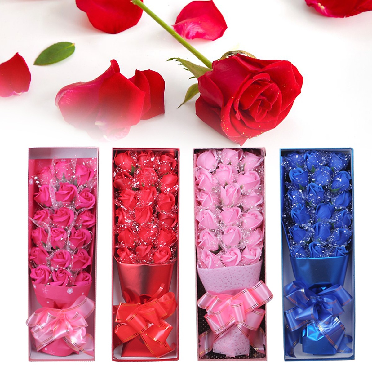 Hoa hồng sáp thơm 18 bông còn được đựng trong hộp sản phẩm rất đẹp, đây là món quà tặng vô cùng ý nghĩa dành cho nửa kia của bạn.