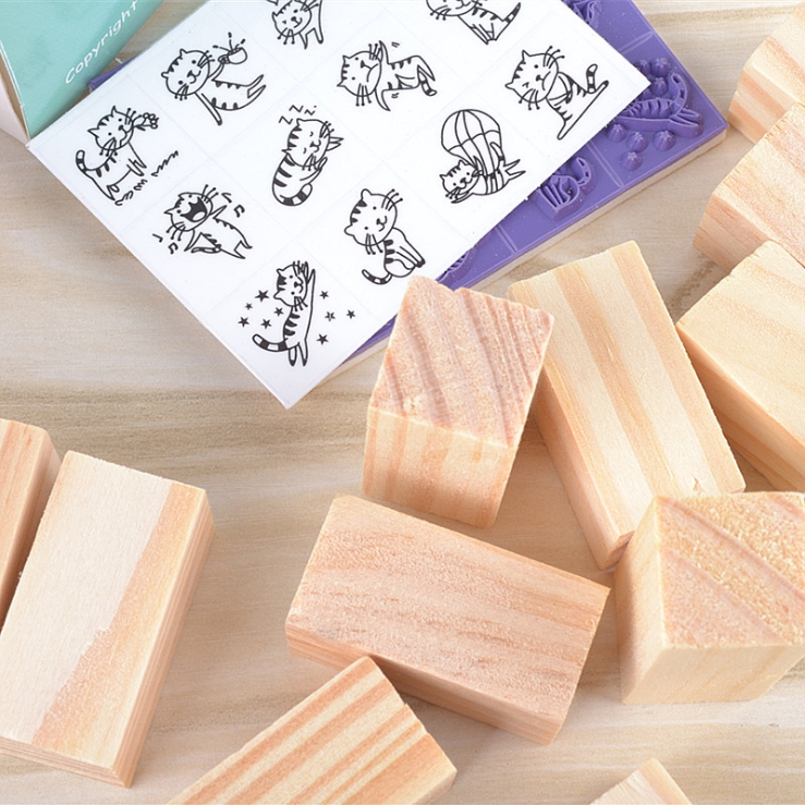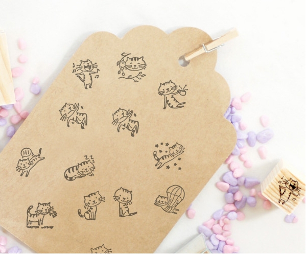 Hộp 12 con dấu gỗ trang trí (Hình mèo)