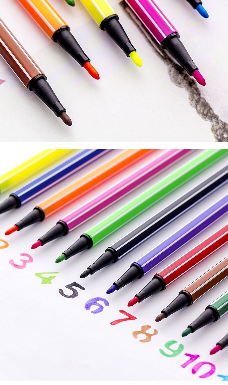 Hộp 24 bút lông tô màu cho các bé yêu (giao ngẫu nhiên) Được thiết kế 1 đầu nhỏ 1mm - nhỏ tiện dụng, giúp bạn có thể thay đổi nét bút tùy theo nhu cầu công việc. Bút tô êm, trơn tru, dễ sử dụng. Sản...