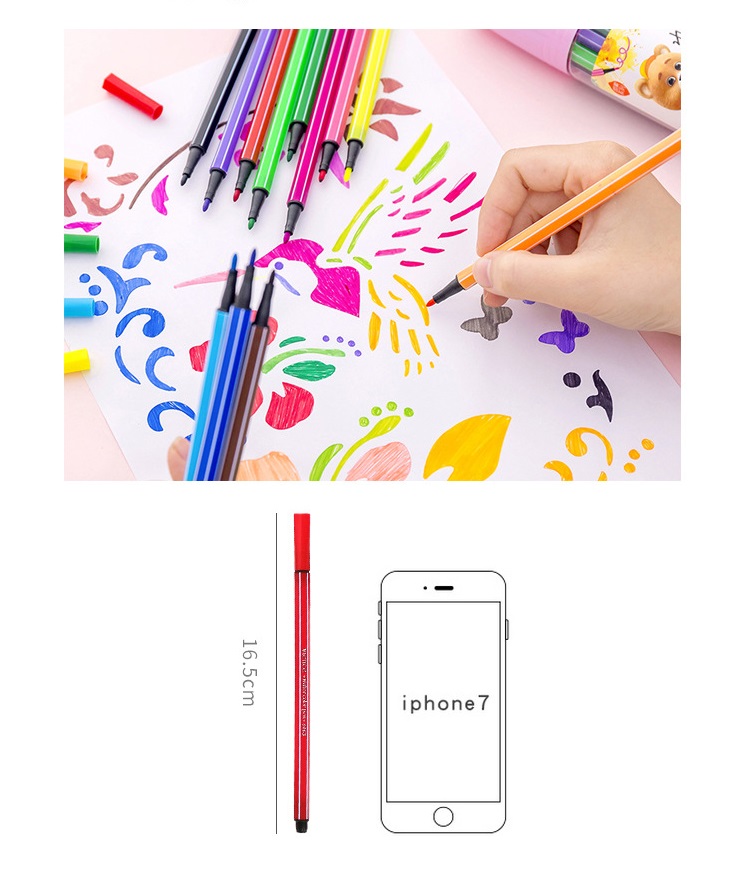 Bút dạ màu gồm nhiều màu, thiết kế vừa tay cầm với trẻ nhỏ, cho các em thỏa sức sáng tạo nên các tác phẩm ấn tượng.