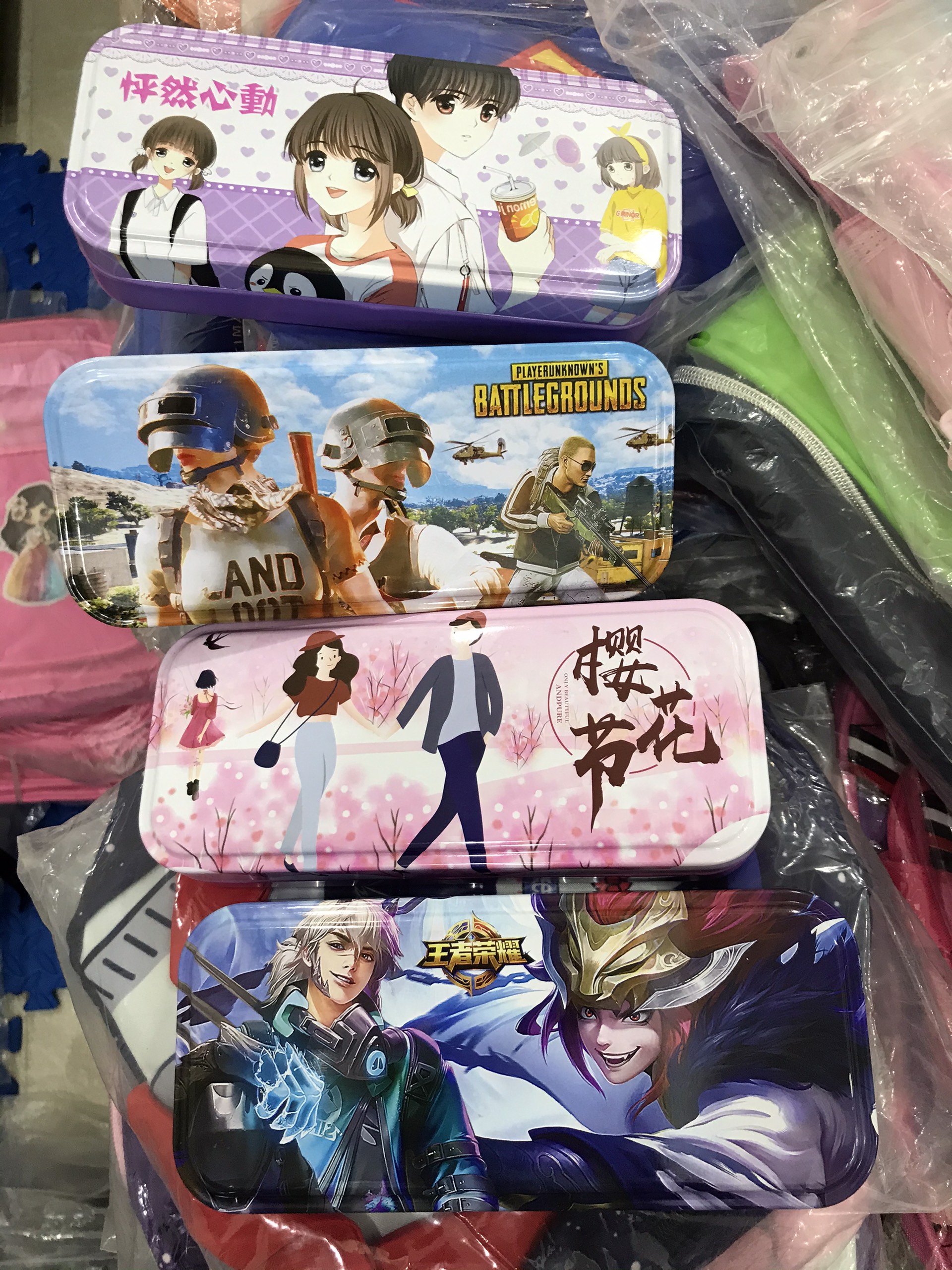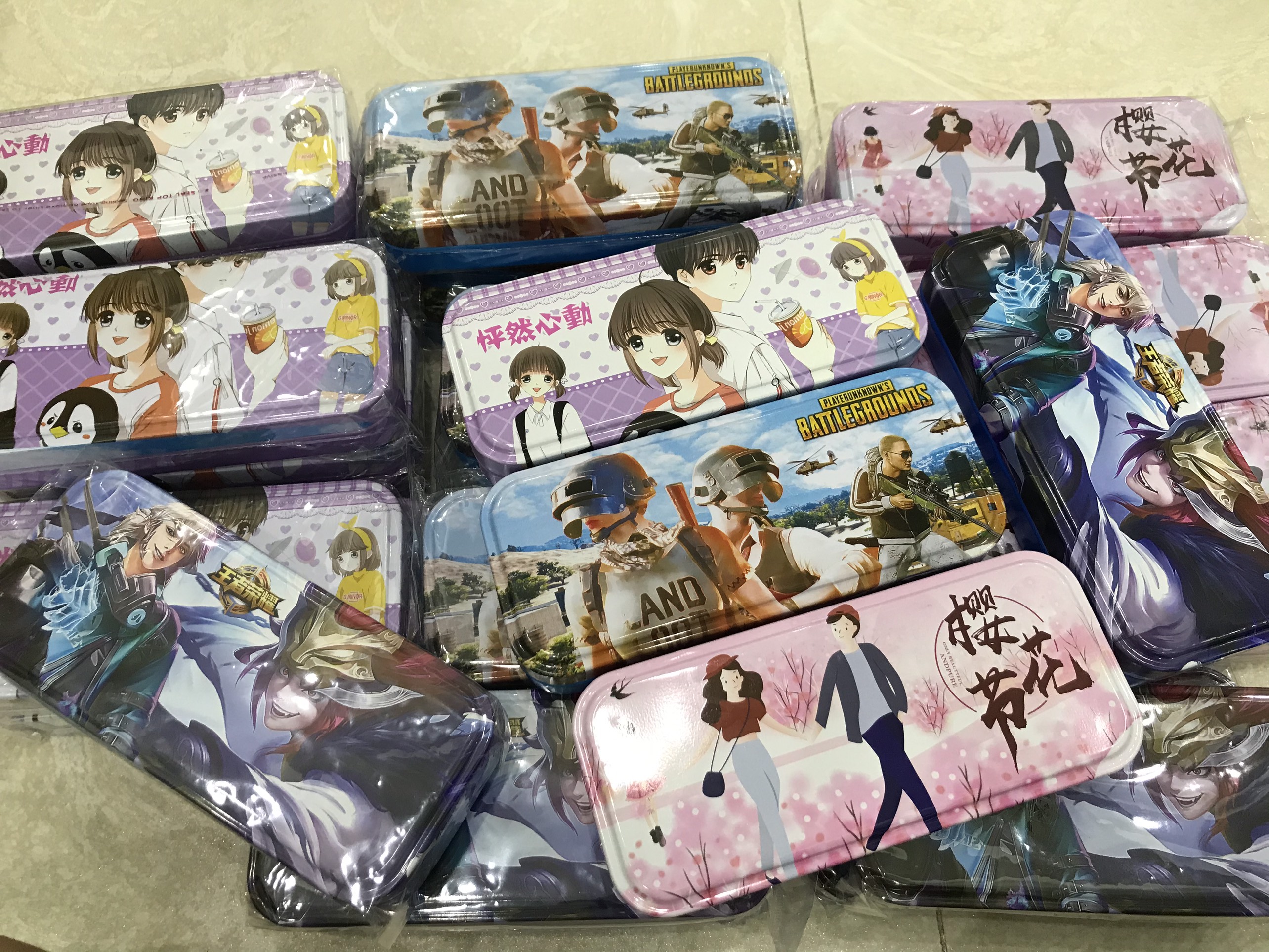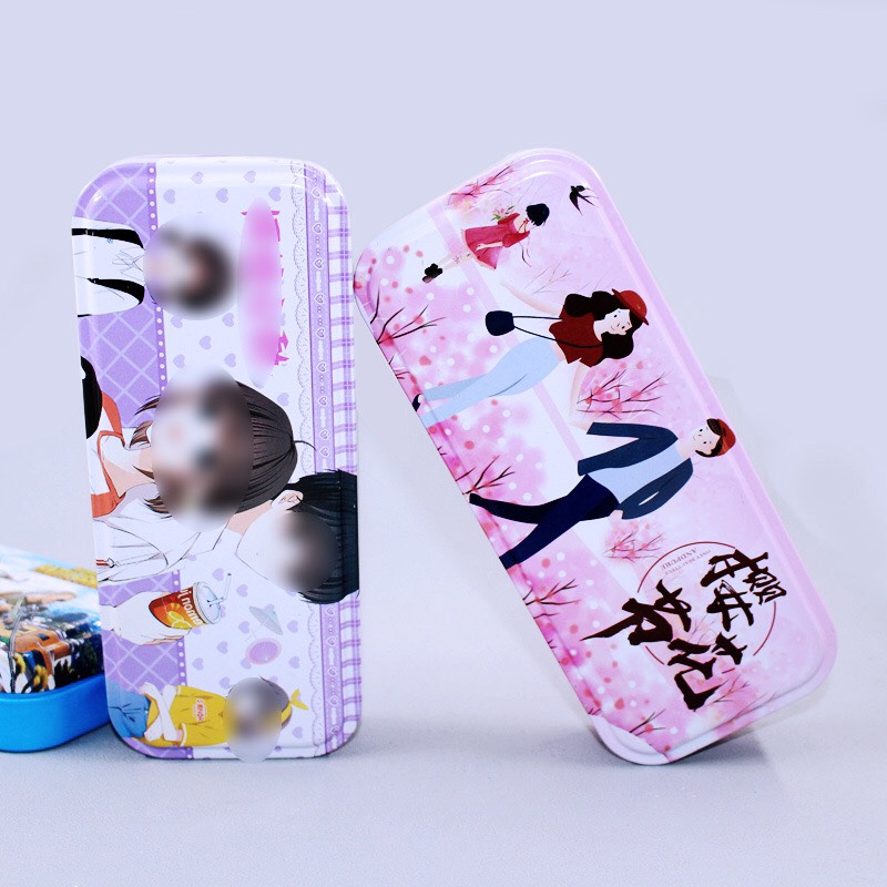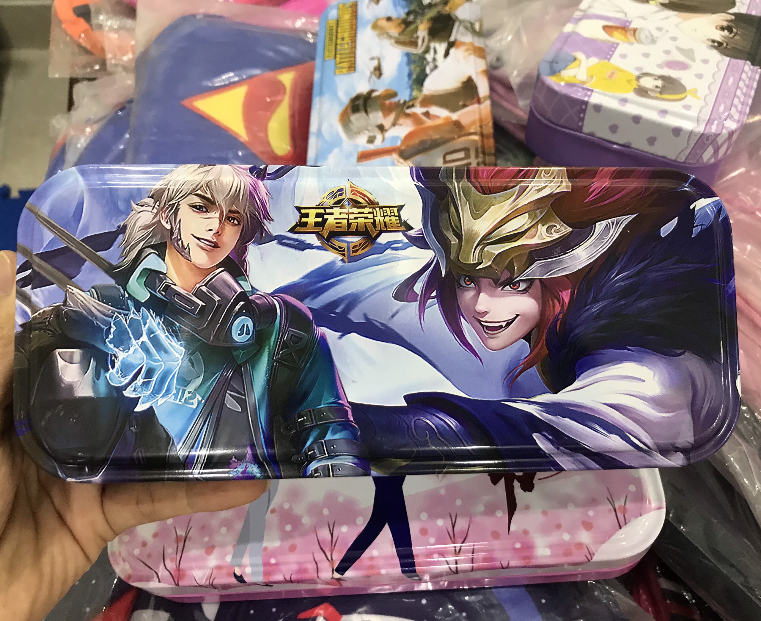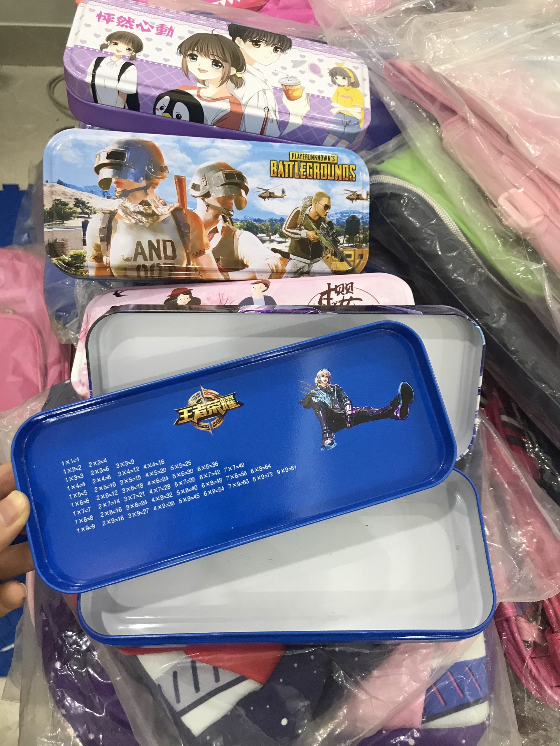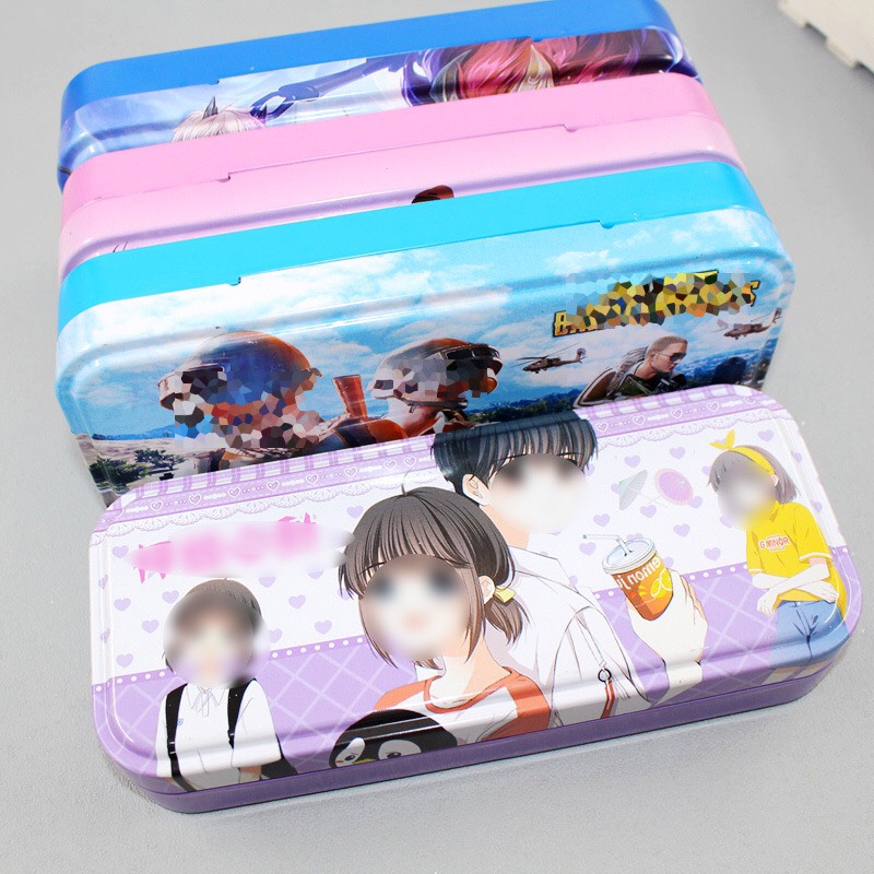 Hộp bút sắt 2 ngăn cho bé trai bé gái có bảng cửu chương in hình Pubg, cô gái, siêu nhân E133