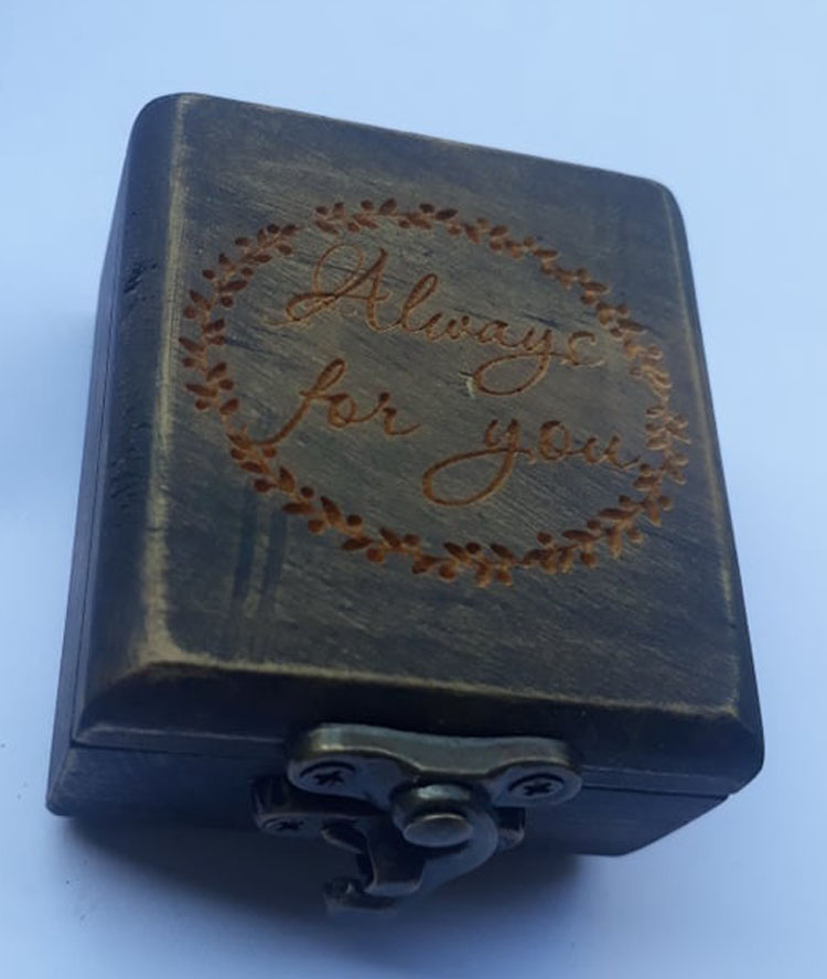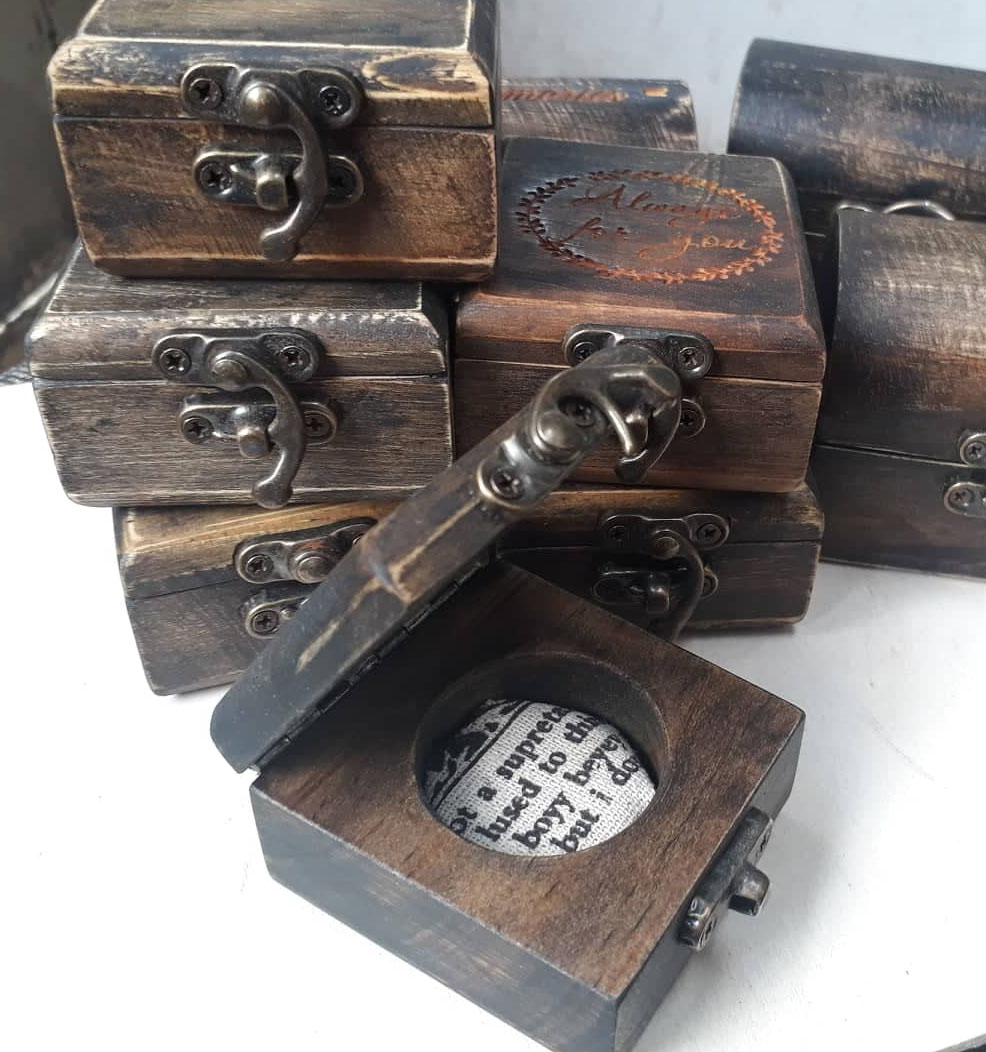 Hộp để nhẫn giả cỗ cao cấp.Chất liệu: Sản phẩm độc đáo được làm bằng 100% gỗ thông.Kích thước: ngang 5,5 cm sâu 6 cm cao 3cm Hộp để nhẫn thích hợp làm quà tặng cho những dịp quan trọng và ý nghĩa...