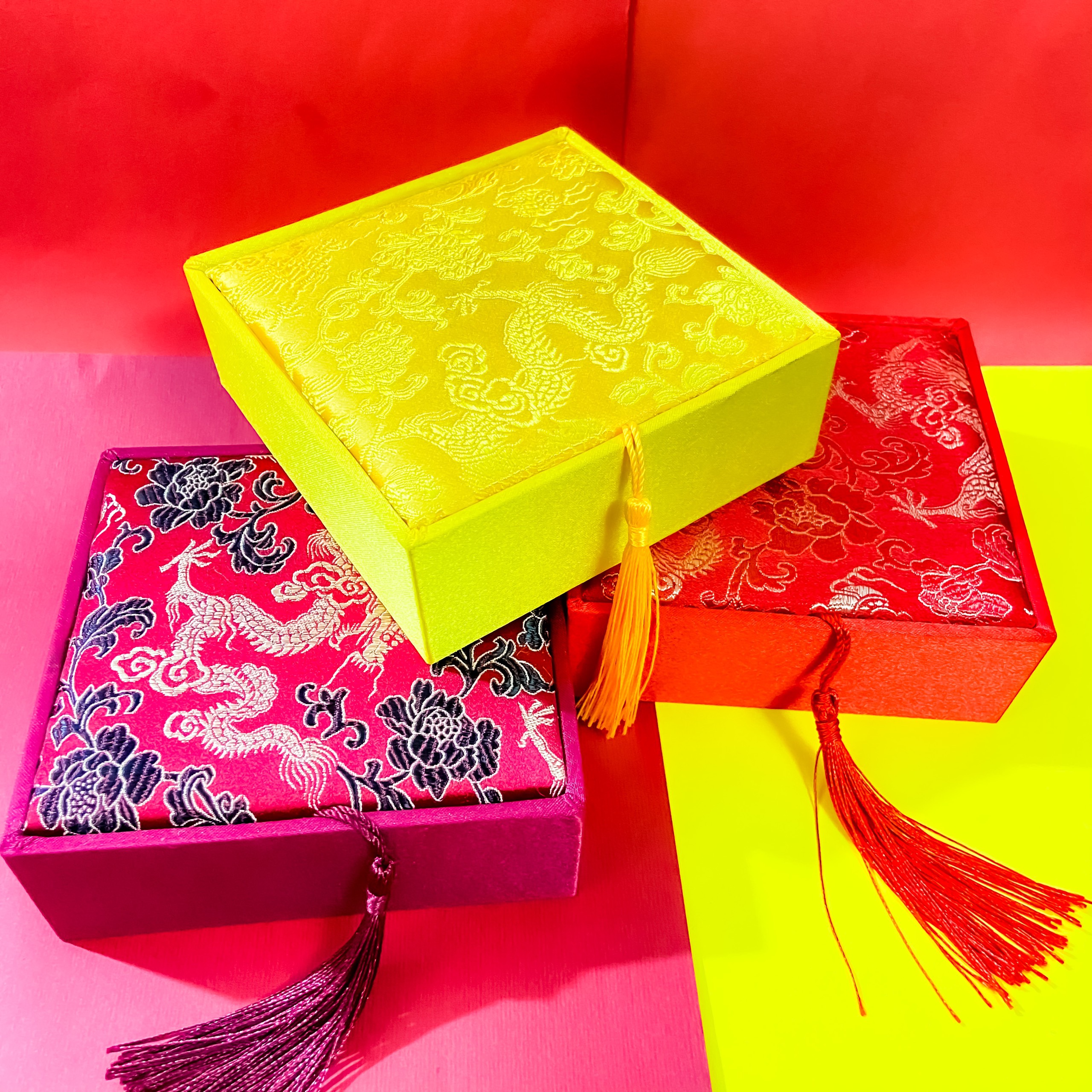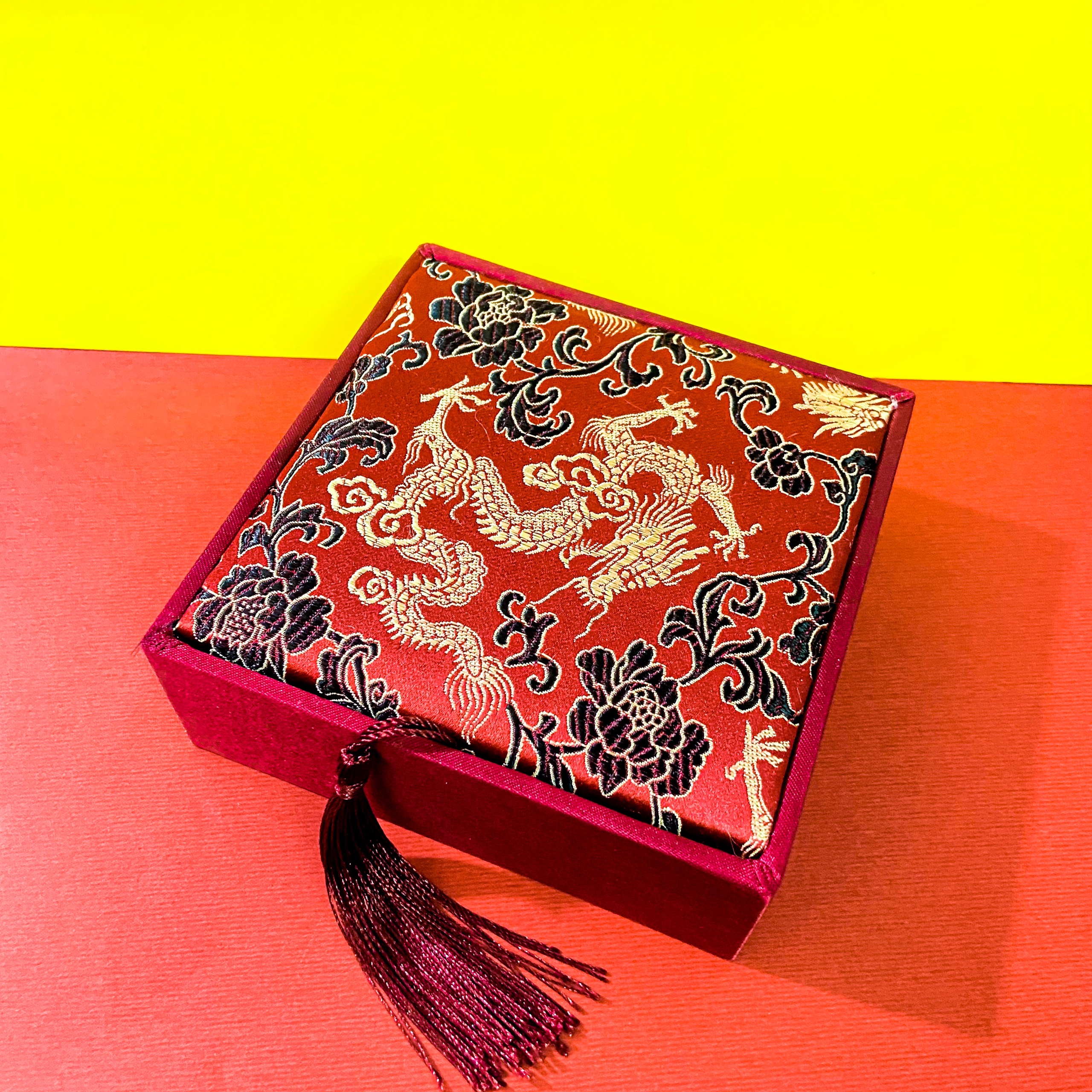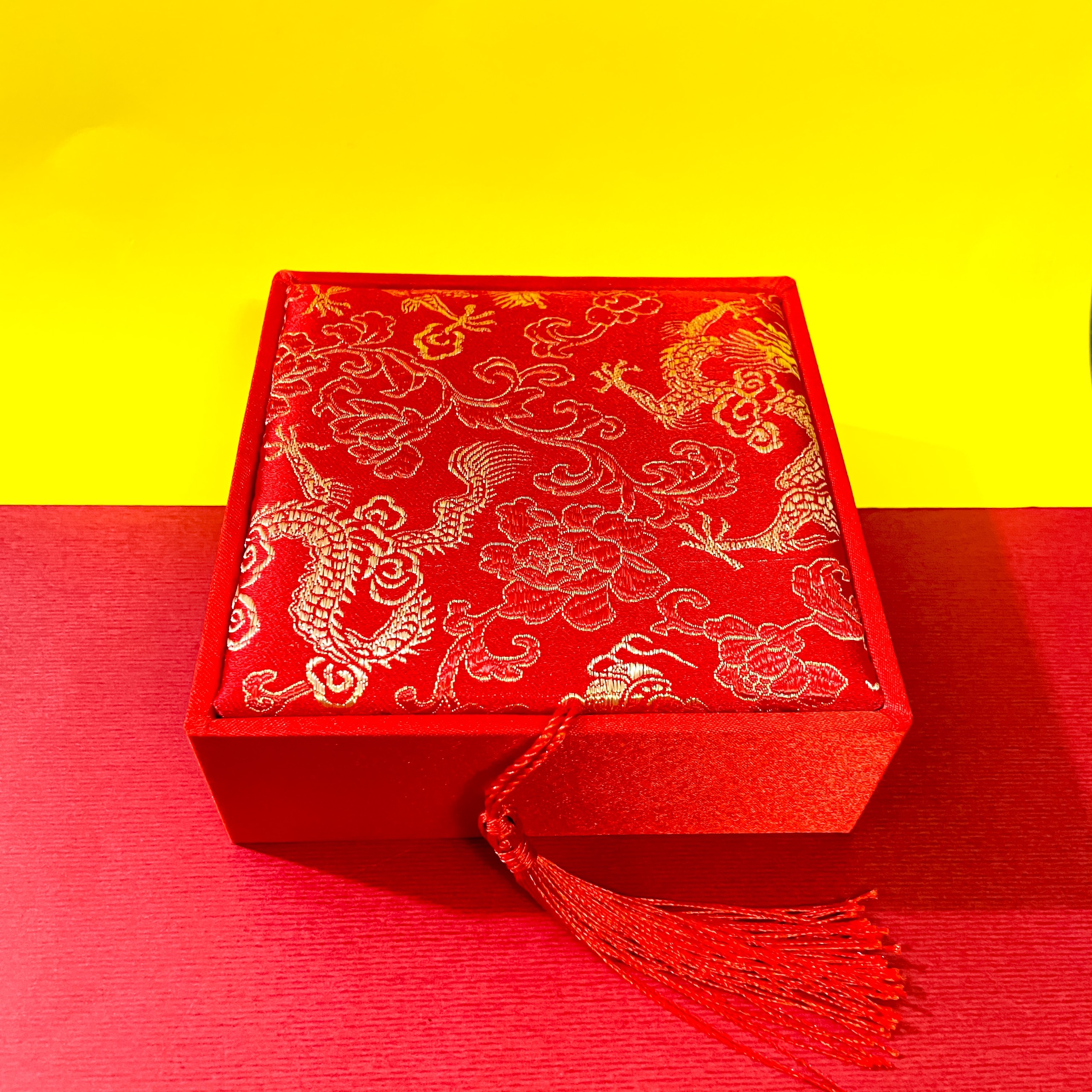 Hộp gỗ vuông gấm hình RỒNG PHƯỢNG đựng phụ kiện cổ trang xinh xắn (MẪU GIAO NGẪU NHIÊN)