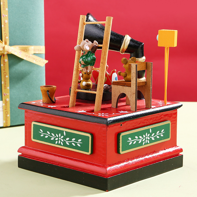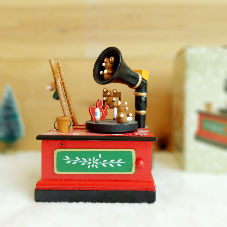 Hộp nhạc gỗ Noel có dây cót phát nhạc giáng sinh