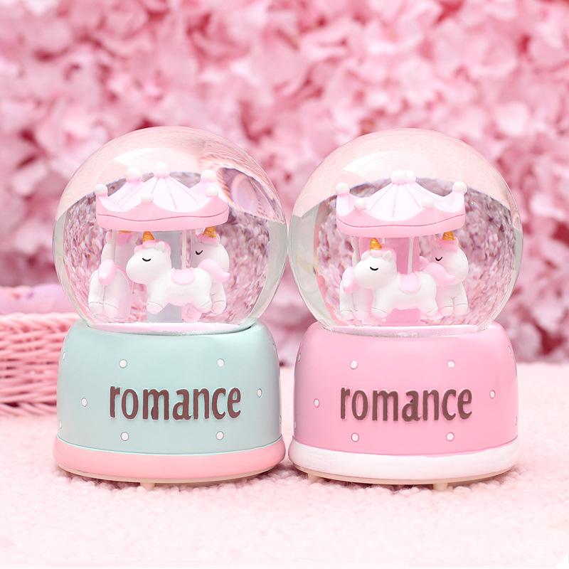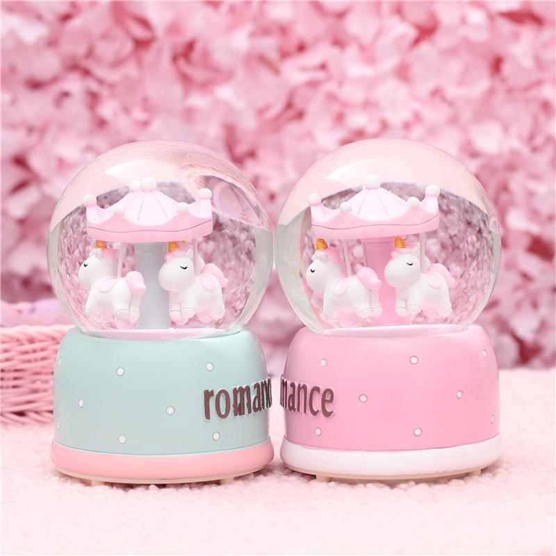 Hộp Nhạc Quả Cầu Tuyết Vòng Xoay Ngựa Gỗ