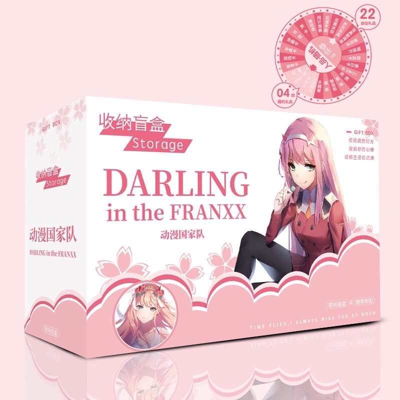 Hộp quà DARLING IN THE FRANXX chữ nhật ngang có bình nước postcard bookmark banner huy hiệu in hình anime chibi