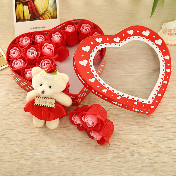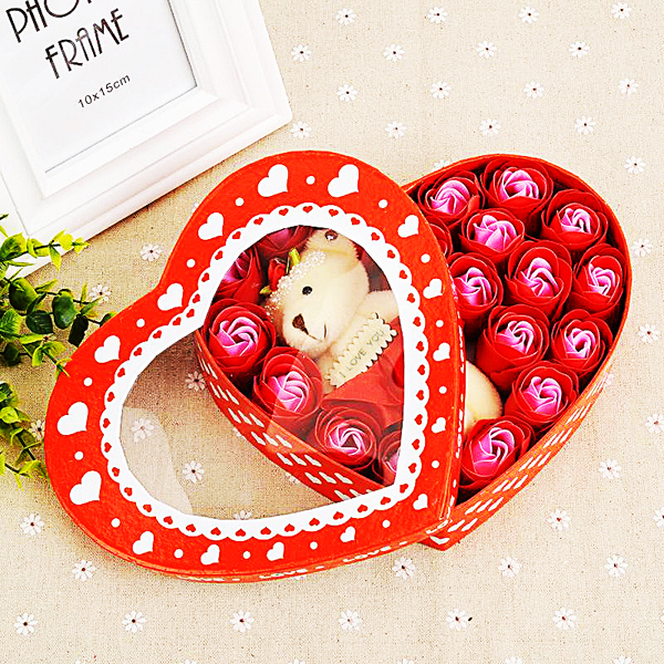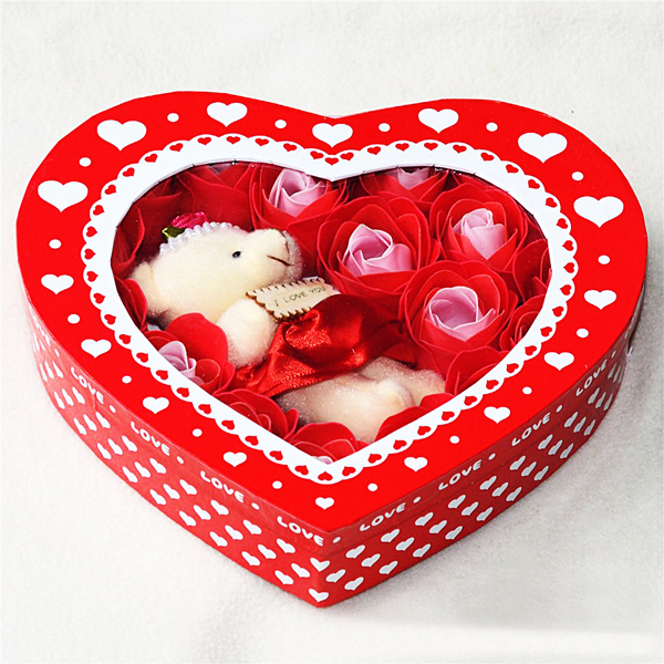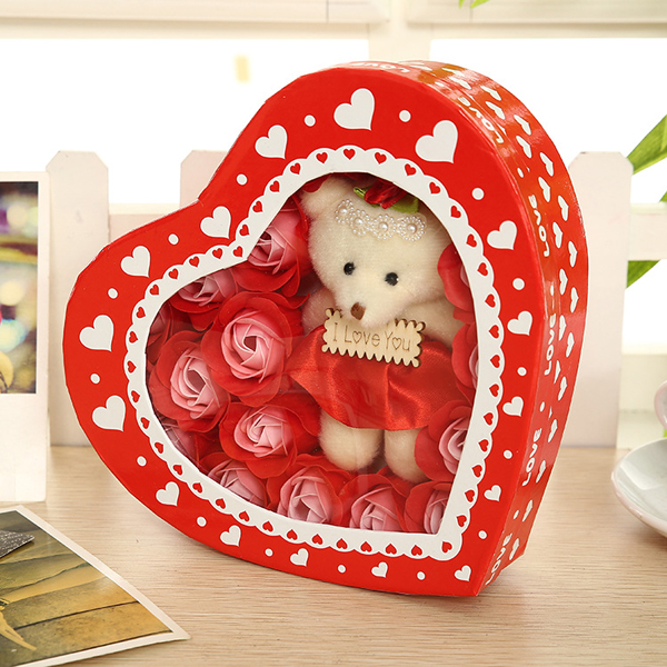 Hộp quà trái tim gấu và hoa hồng - Màu Đỏ