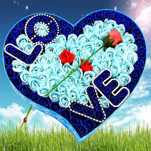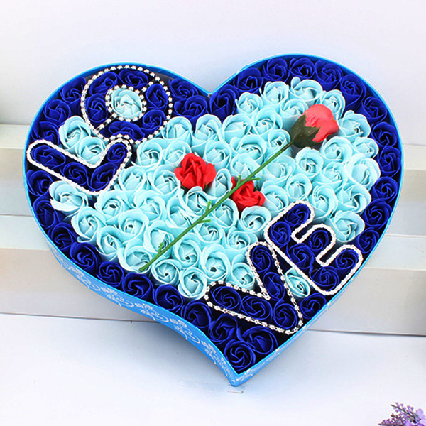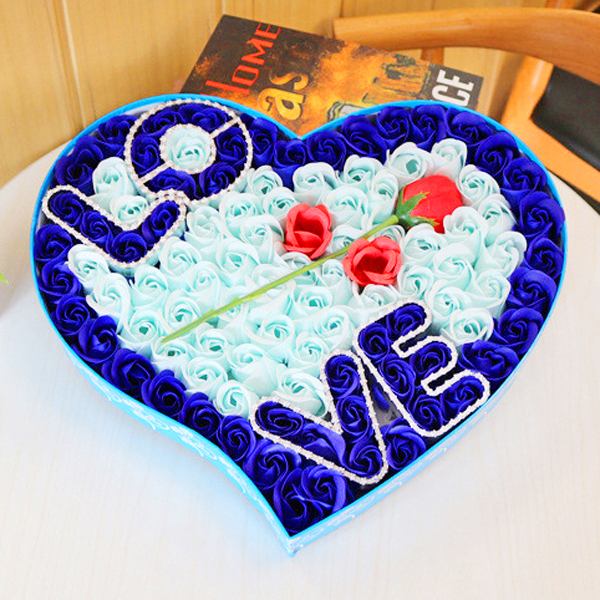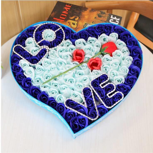 Hộp quà trái tim hoa hồng sáp 99 bông chữ LOVE V.1 - Màu Xanh Dương