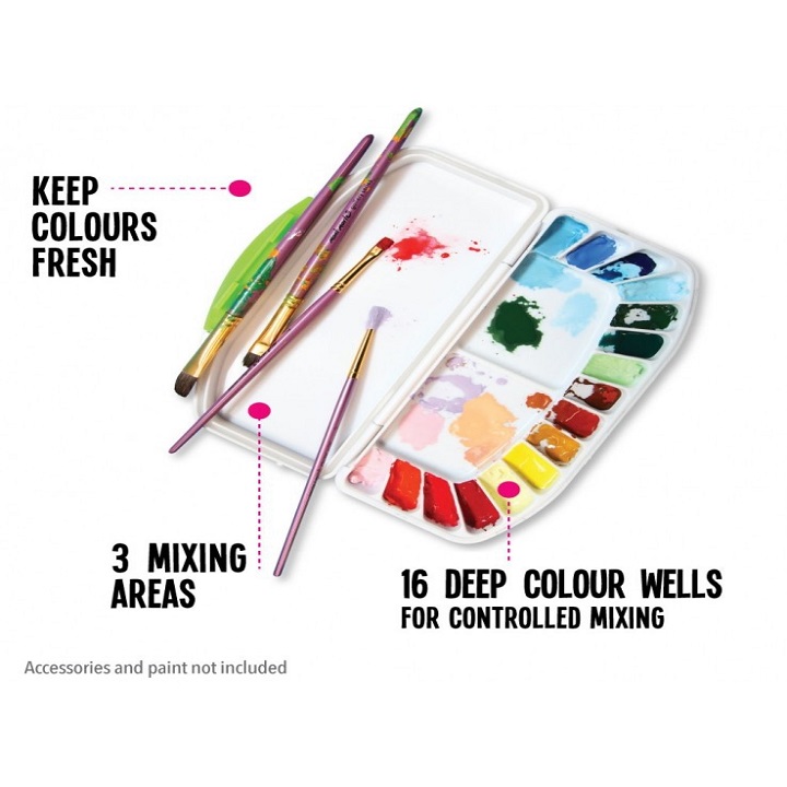 Khay pha được thiết kế dạng gấp tiện lợi, đễ dàng mang theo, dùng để pha màu nước, màu bột, sơn dầ