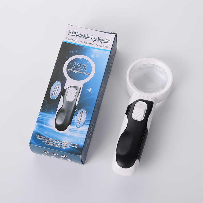 Đặc điểm nổi bật Đường kính thấu kính:50mm Độ phóng đại của sản phẩm: 10 lần Chất liệu sản phẩm: Ống kính acrylic + tay cầm và khung bằng nhựa ABS Đèn led sử dụng 3 pin AAA Thích hợp với công việc...