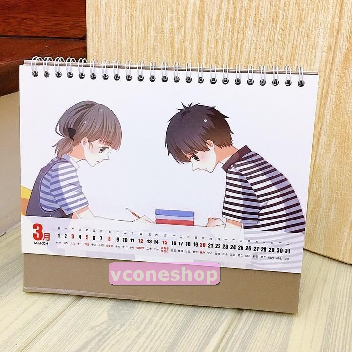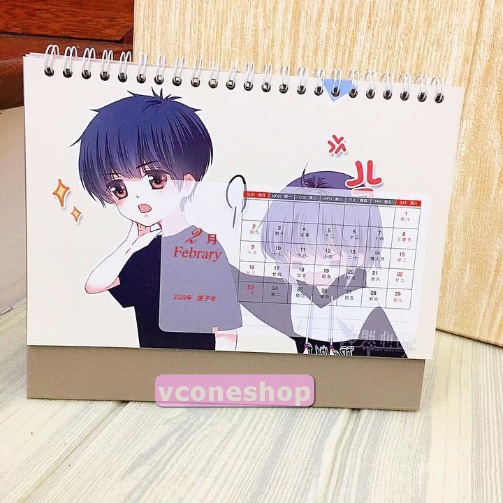 Lịch anime chibi 2020 Con tim rung động để bàn tặng ảnh thiết kế Vcone