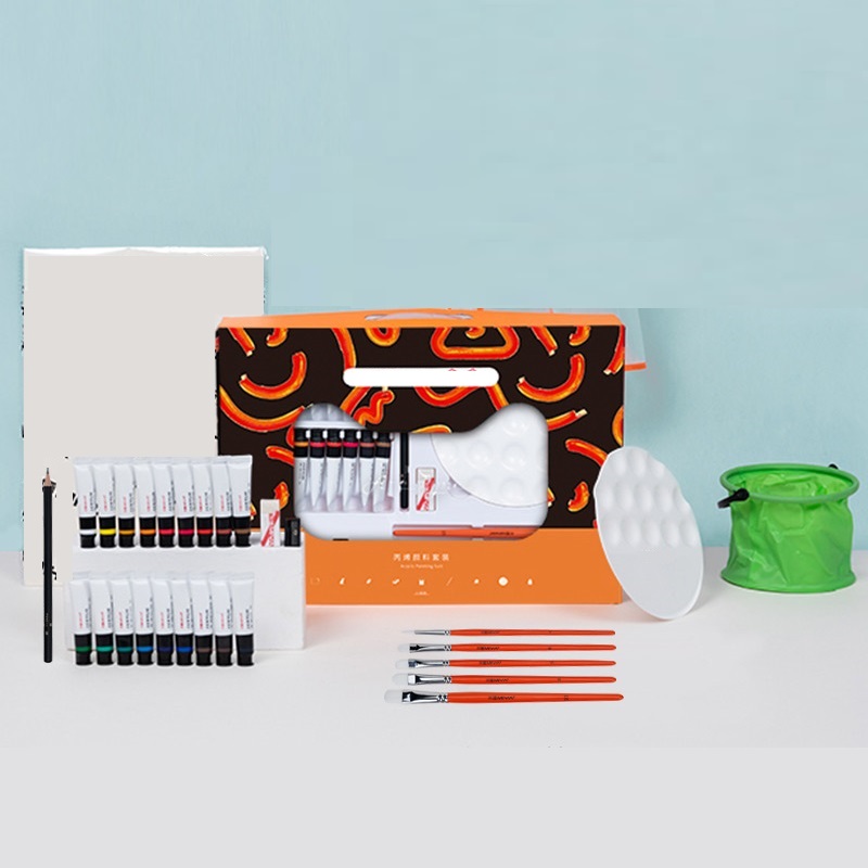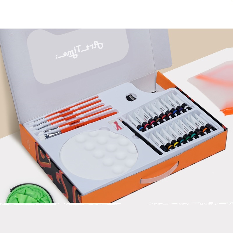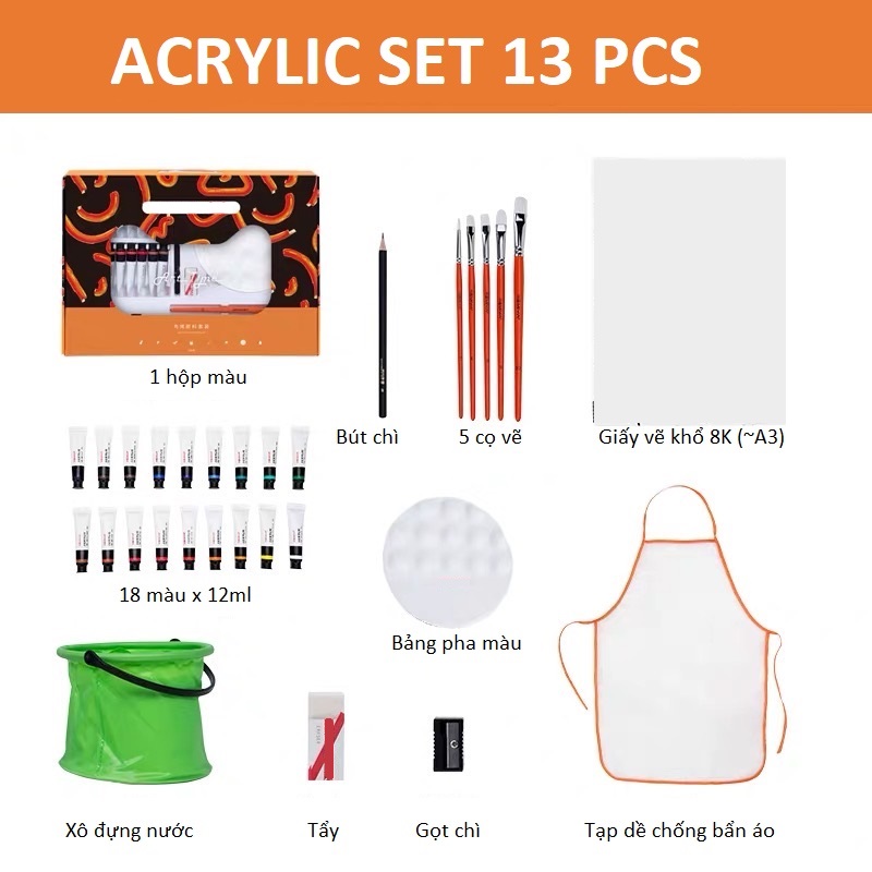 Màu acrylic dạng tuýp set 18 màu đi kèm bộ dụng cụ chuyên vẽ tranh trên tường, quần áo, giày dépSet màu Acrylic Gift Set1 set bao gồm:18 tuýp màu Acrylic, 1 palette pha màu, 5 cọ vẽ, 1 bút chì sketch...