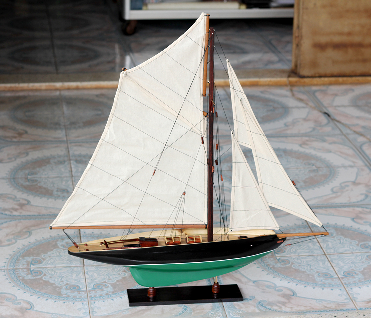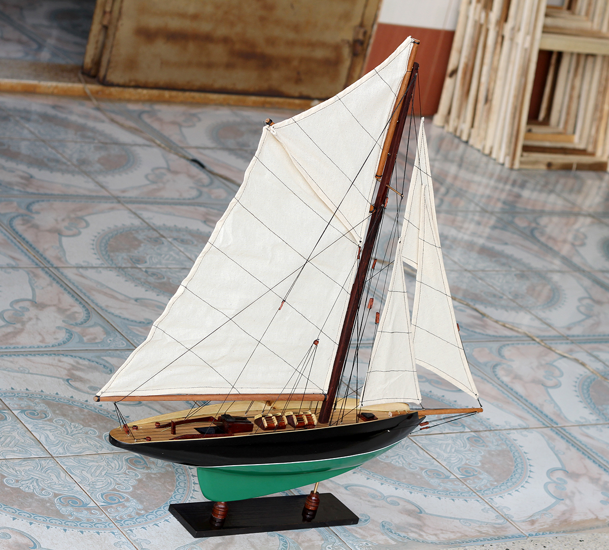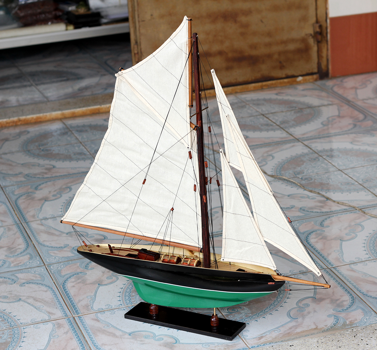Mô hình được hoàn thành với hàng chục ngày làm việc bởi các nghệ nhân lành nghề có trình độ kỹ thuật cao. Với bàn tay khéo léo, tỉ mỉ và cẩn thận, các nghệ nhân thủ công mỹ nghệ đã mô phỏng từ chiếc thuyền thực tế thành mô hình tàu thuyền gỗ, cùng các chi tiết như vỏ tàu, thân tàu, boong tàu, cột và cánh buồm, cũng như các trang trí khác...