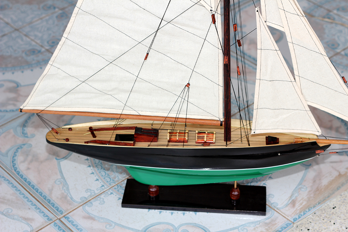 + Mô hình được hoàn thành với hàng chục ngày làm việc bởi các nghệ nhân lành nghề có trình độ kỹ thuật cao. Với bàn tay khéo léo, tỉ mỉ và cẩn thận, các nghệ nhân thủ công mỹ nghệ đã mô phỏng từ chiếc thuyền thực tế thành mô hình tàu thuyền gỗ, cùng các chi tiết như vỏ tàu, thân tàu, boong tàu, cột và cánh buồm, cũng như các trang trí khá