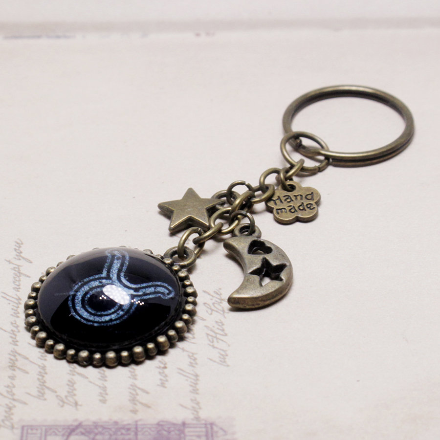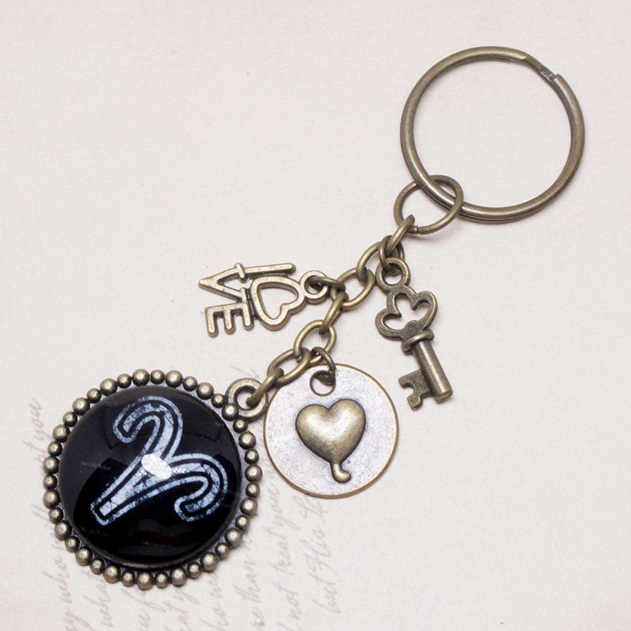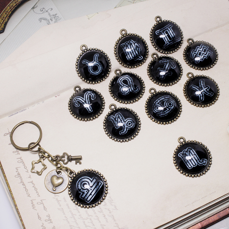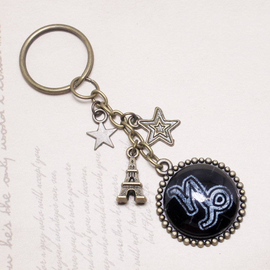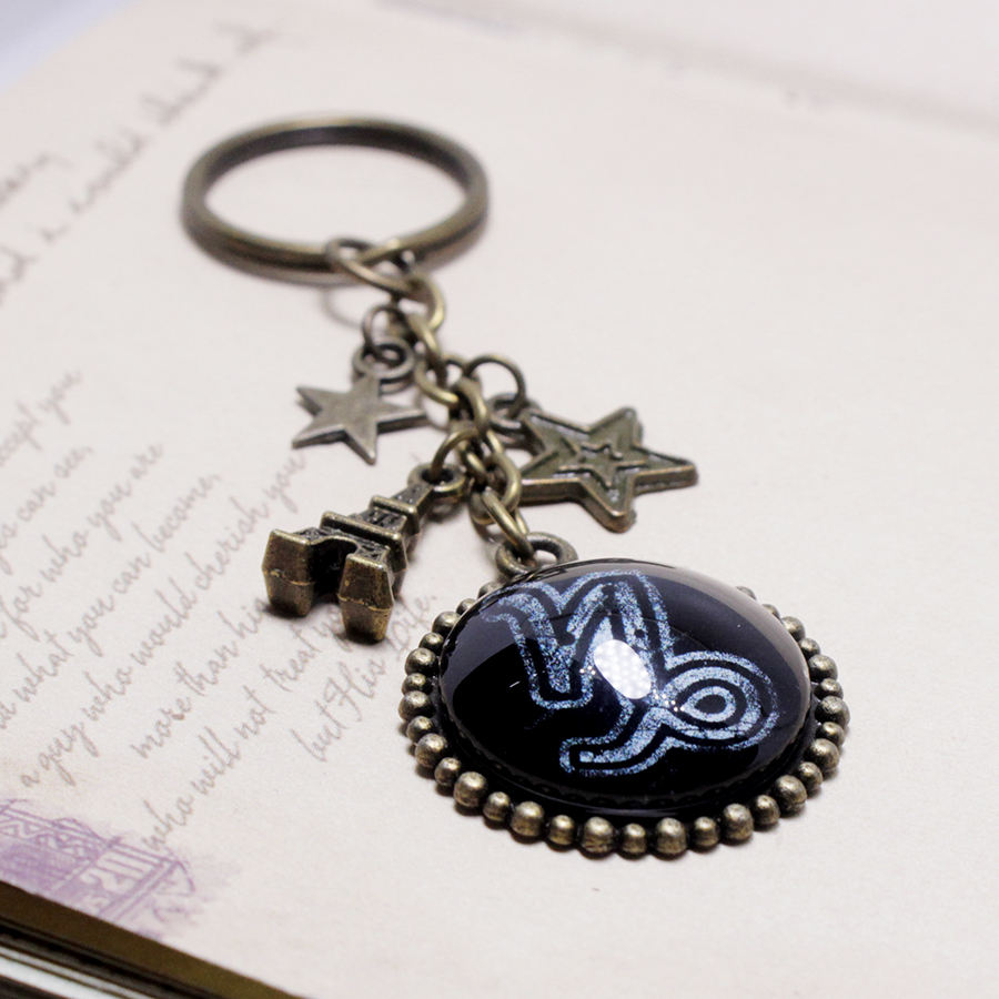 Móc khóa 12 cung hoàng đạo Zodiac ptông đen huyền bí 06646-M8