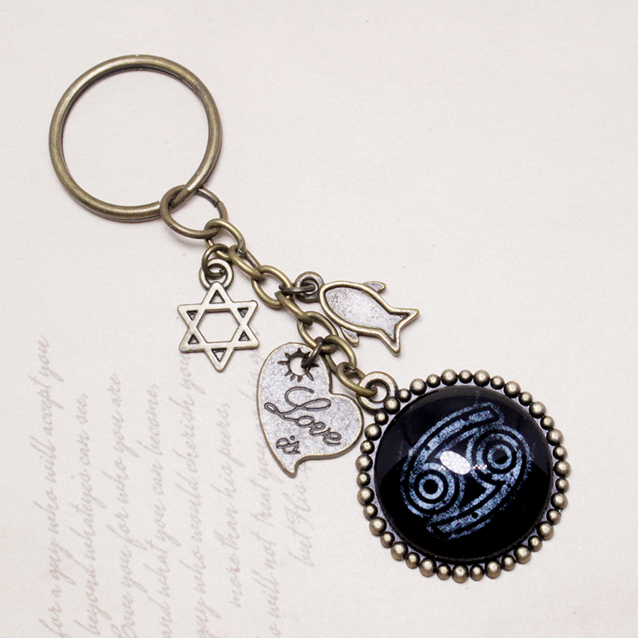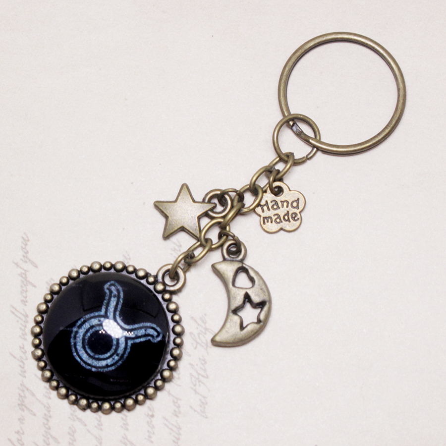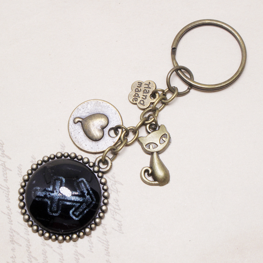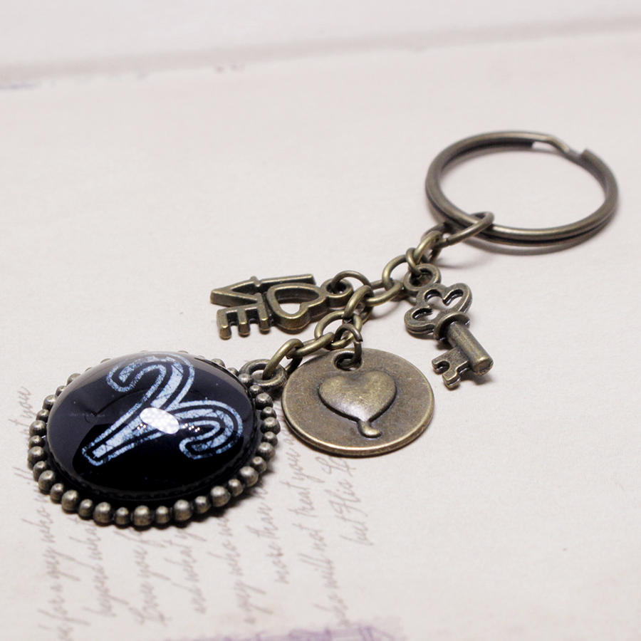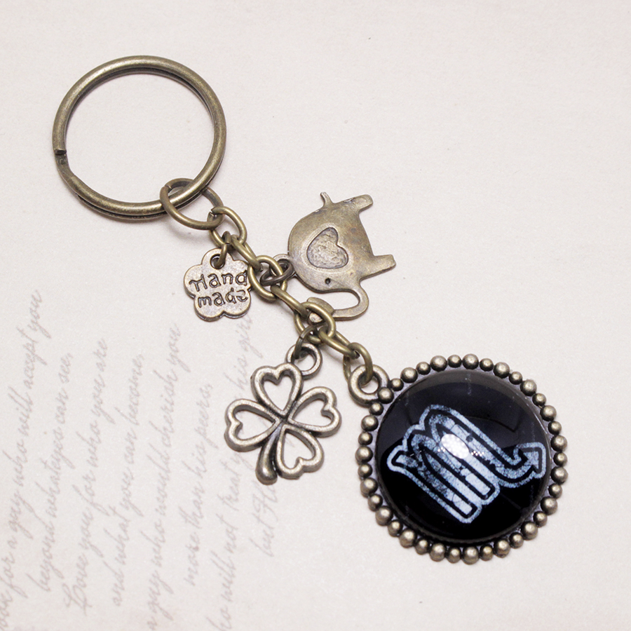 Móc khóa 12 cung hoàng đạo Zodiac ptông đen huyền bí 06646-M8