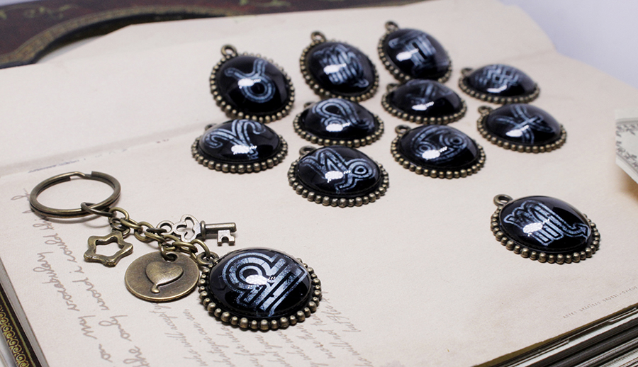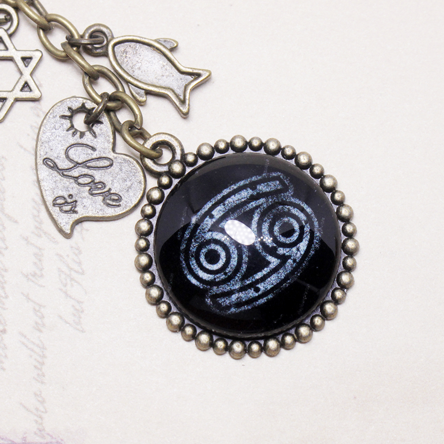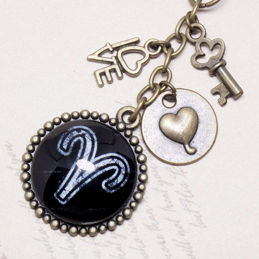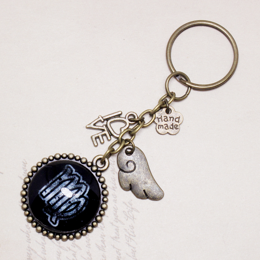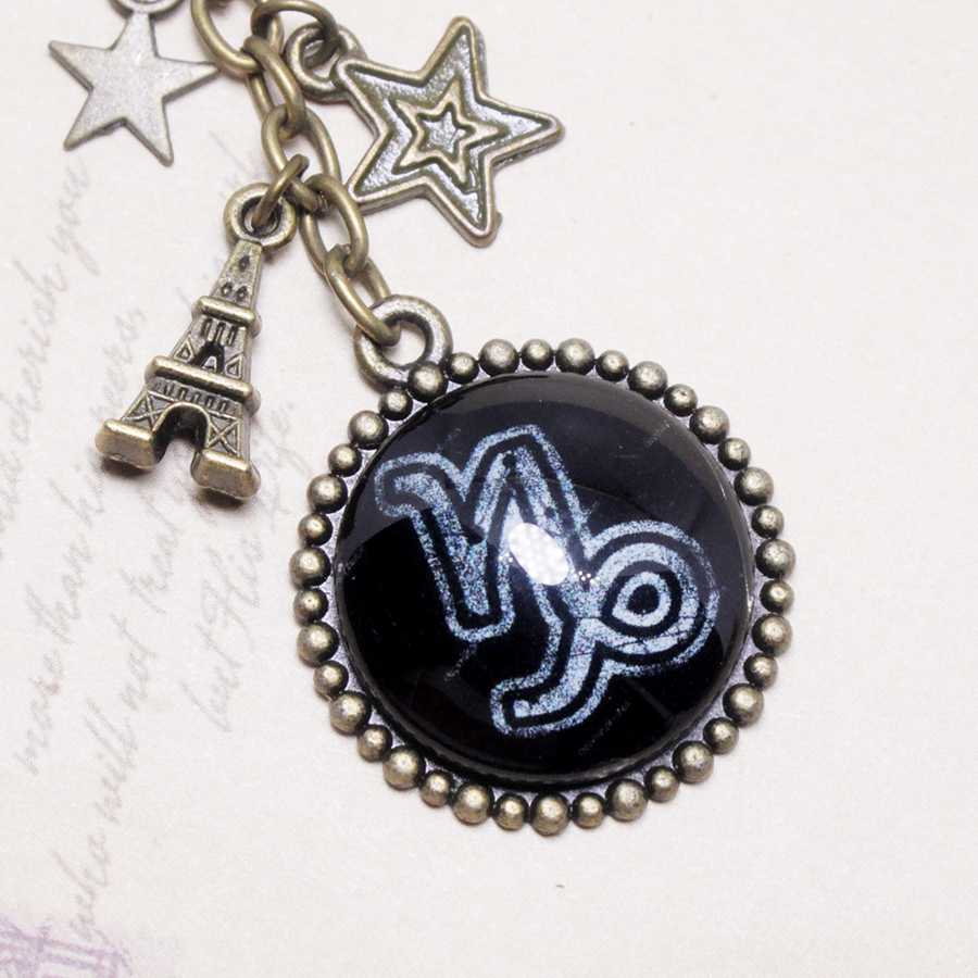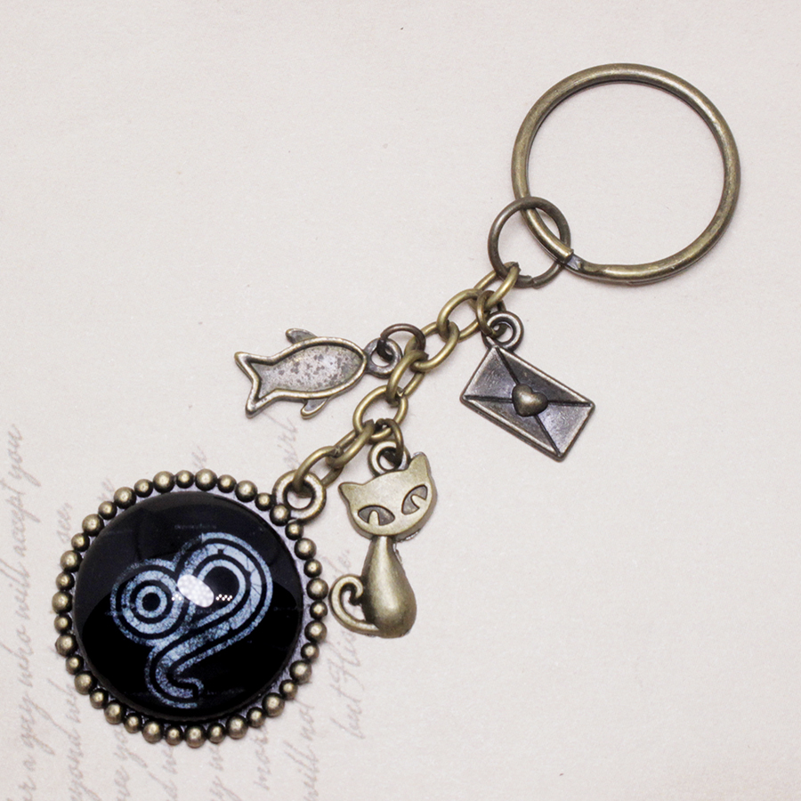 Móc khóa 12 cung hoàng đạo Zodiac ptông đen huyền bí 06646-M8