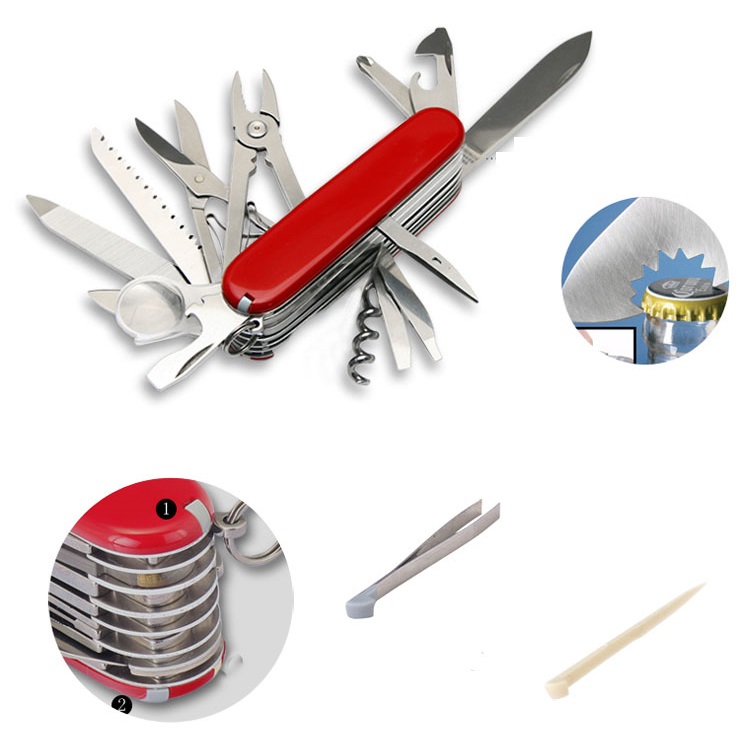 Móc khóa đa năng, nhỏ gọn tiện lợi tích hợp mang theo khi đi du lịch, dã ngoại 17 chức năng trong 1( Tặng kèm miếng thép 11in1 để ví da )