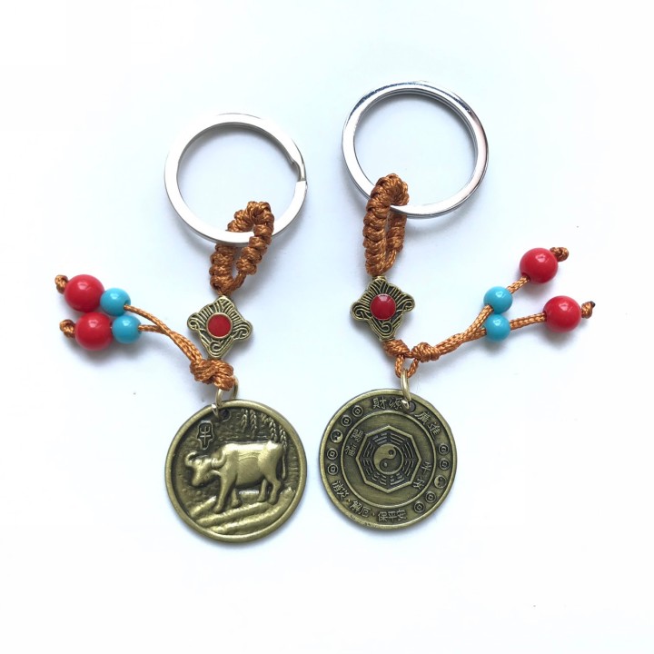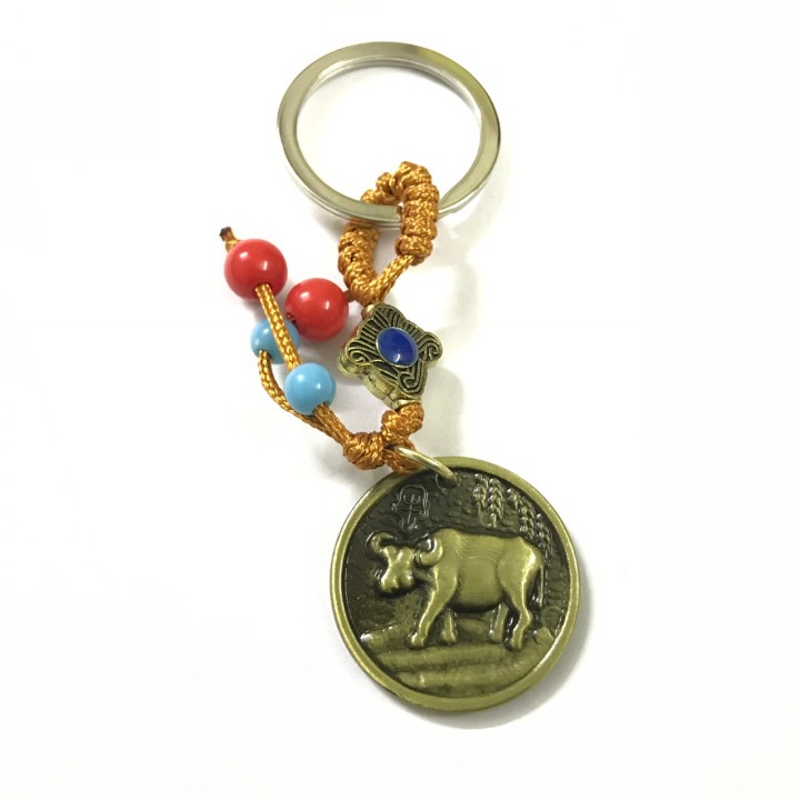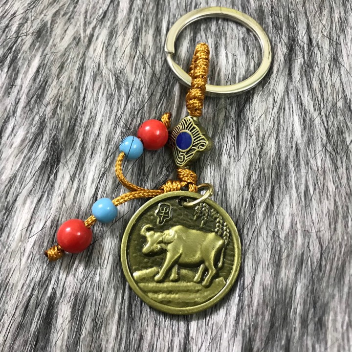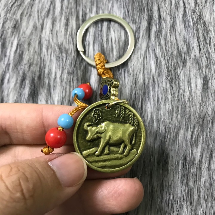 Móc khóa hình con Trâu bằng nhựa sơn màu đồng, bền chắc, nhẹ