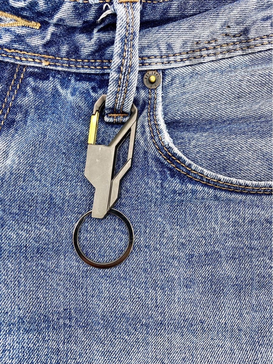 Thanh bóp của móc khóa có độ bật tốt, thiết kế màu vàng đồng phối màu xám lông chuột rất hài hòa, cá tính và nhìn rất cao cấp.