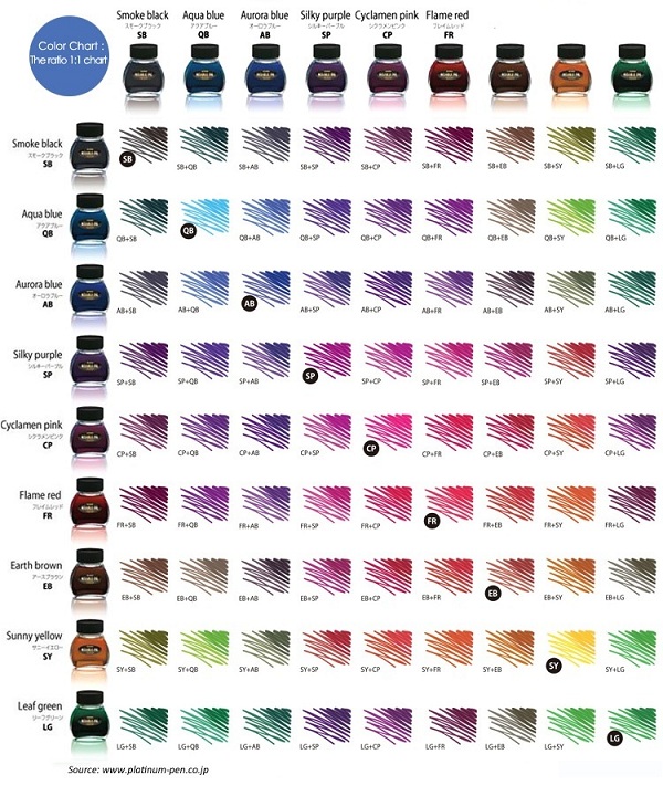 - Bạn chỉ được trộn chung các mầu của Platinum Mixable ink, không được pha với mầu mực thương hiệu khác.