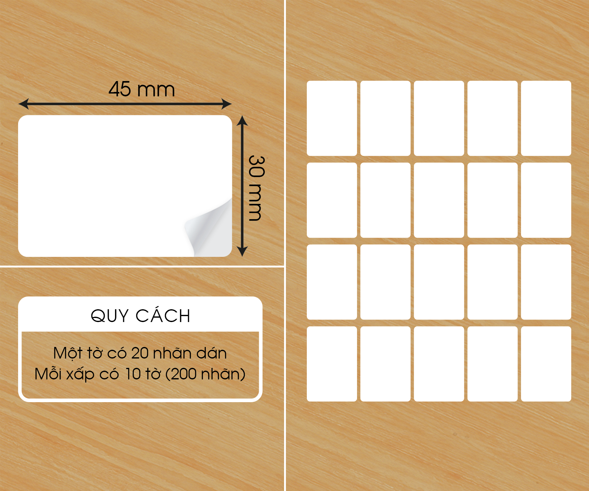QUY CÁCH: 1 tờ 20 nhãn, 1 xấp 10 tờ (200 nhãn)