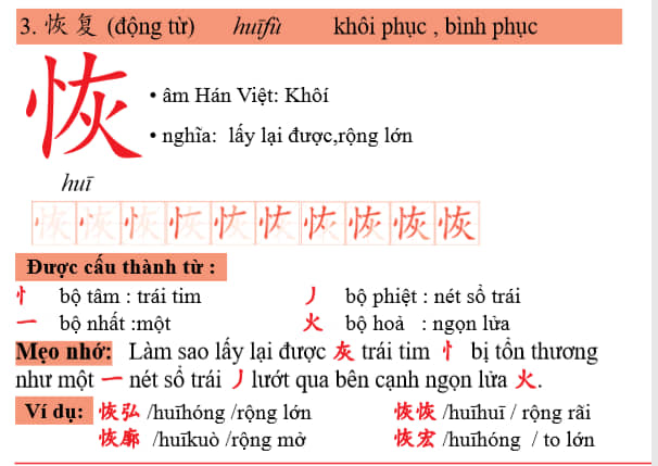 3. Vd về cách ghép các bộ trong tiếng Trung