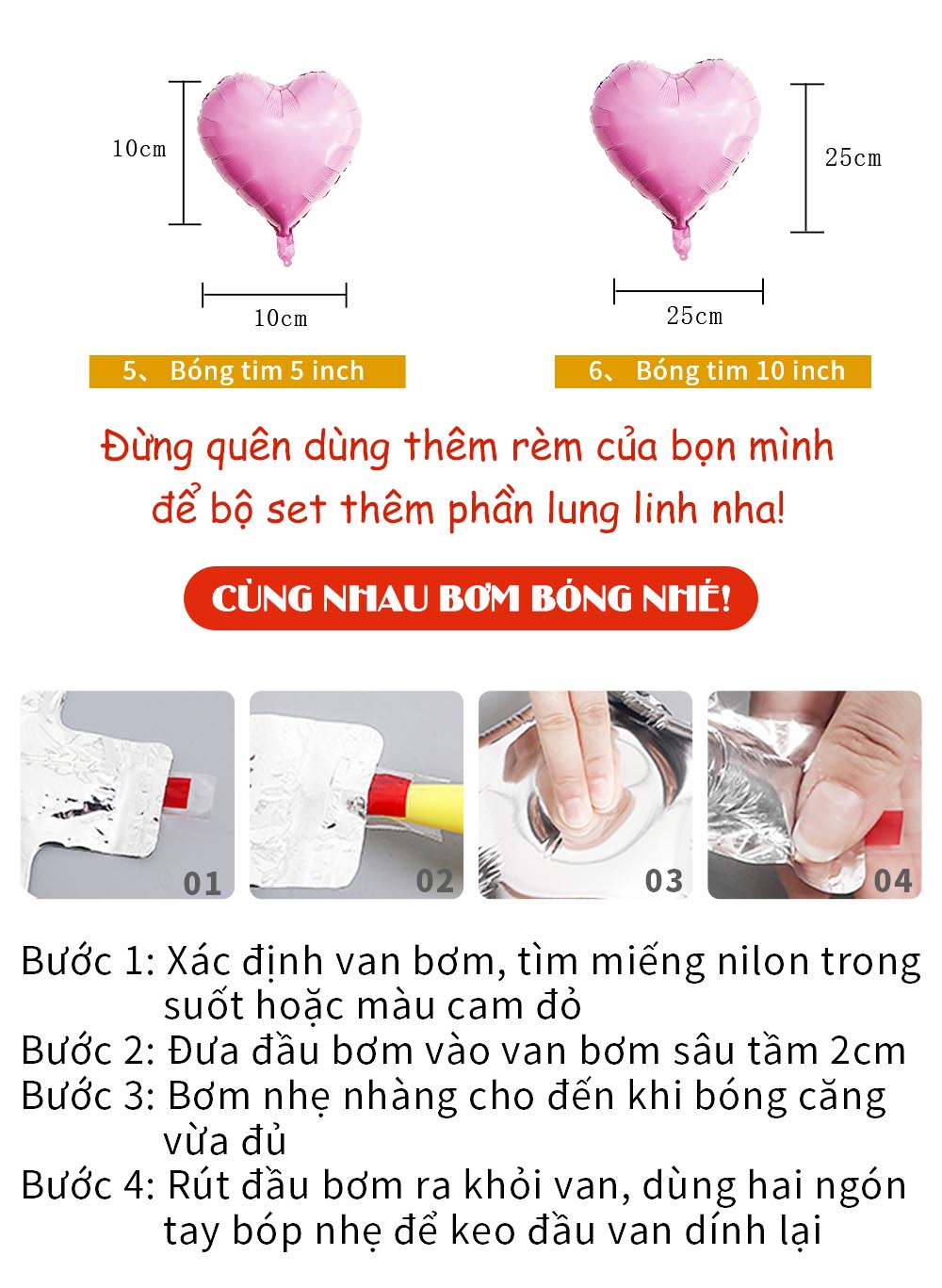 Sản phẩm bán là bóng chưa bơm, quý khách mang về sử dụng làm theo các bước hướng dẫn bên dưới nhé: