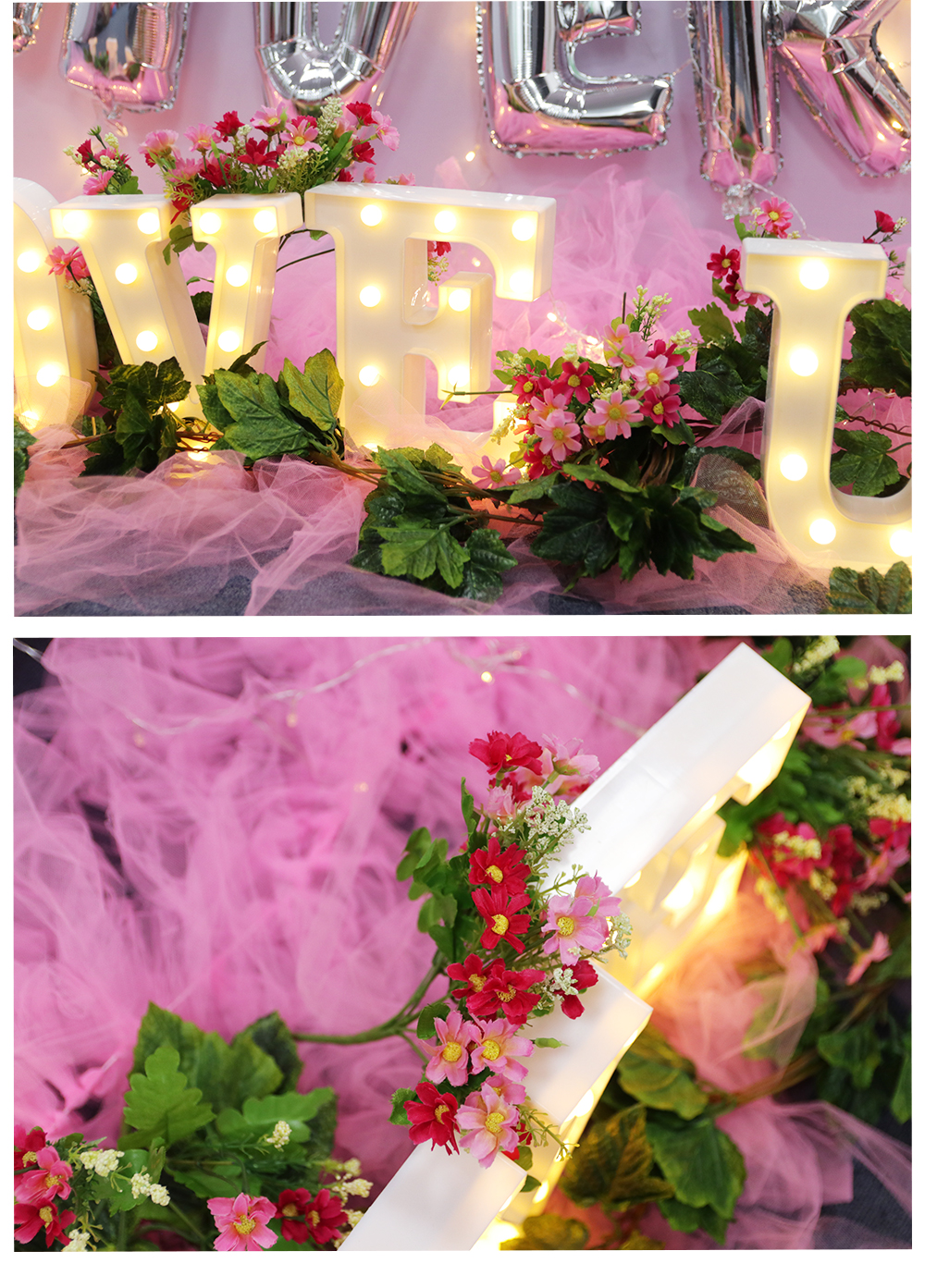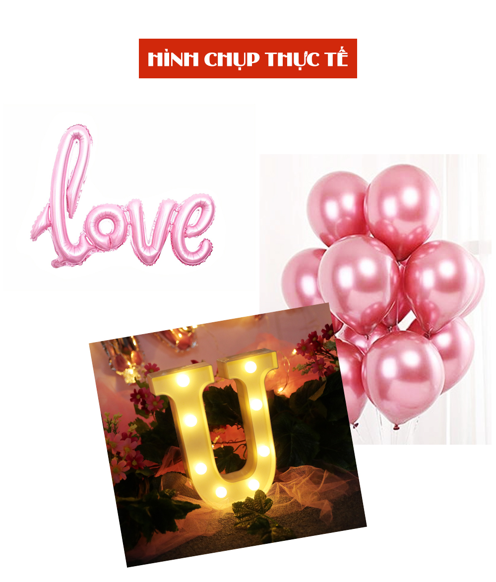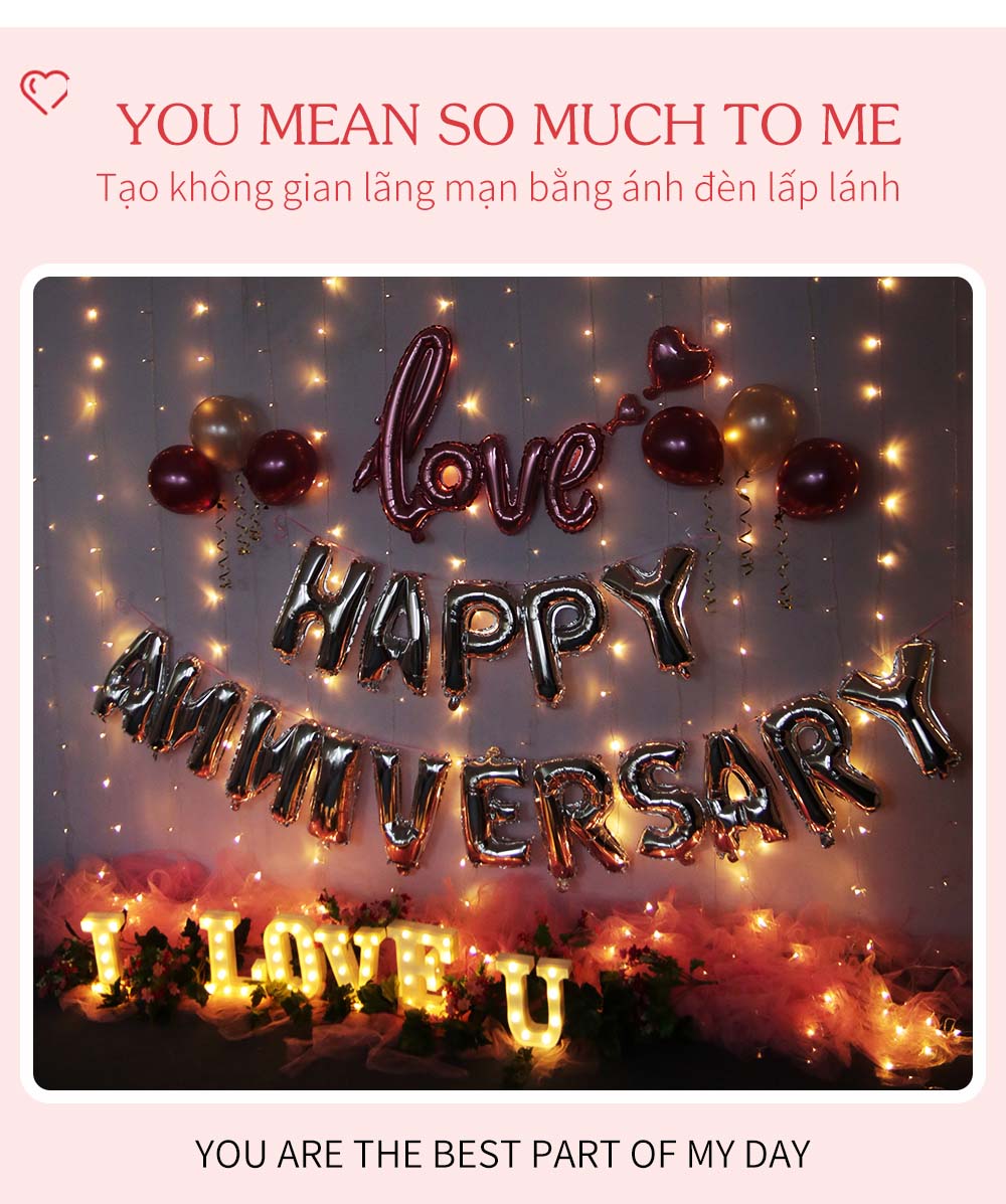Set trang trí ngày anniversary đầy ngọt ngào, lãng mạn cùng bộ chữ, chữ đèn Led, bóng hình, phụ kiện kèm keo dán YBWD-002