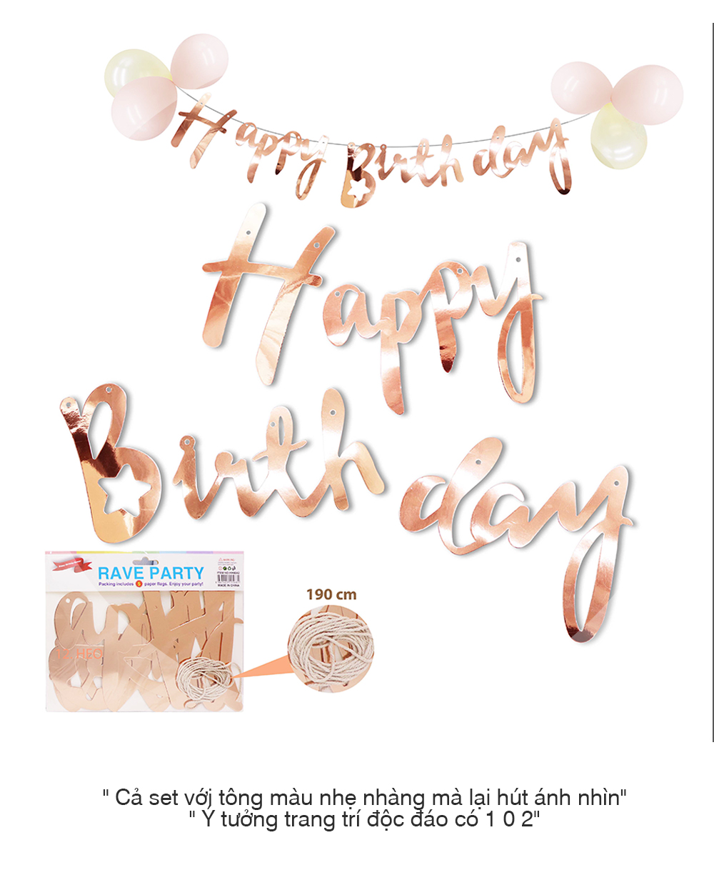 Sản phẩm dùng để trang trí tiệc, sinh nhật, sự kiện. Có độ bền tốt.
