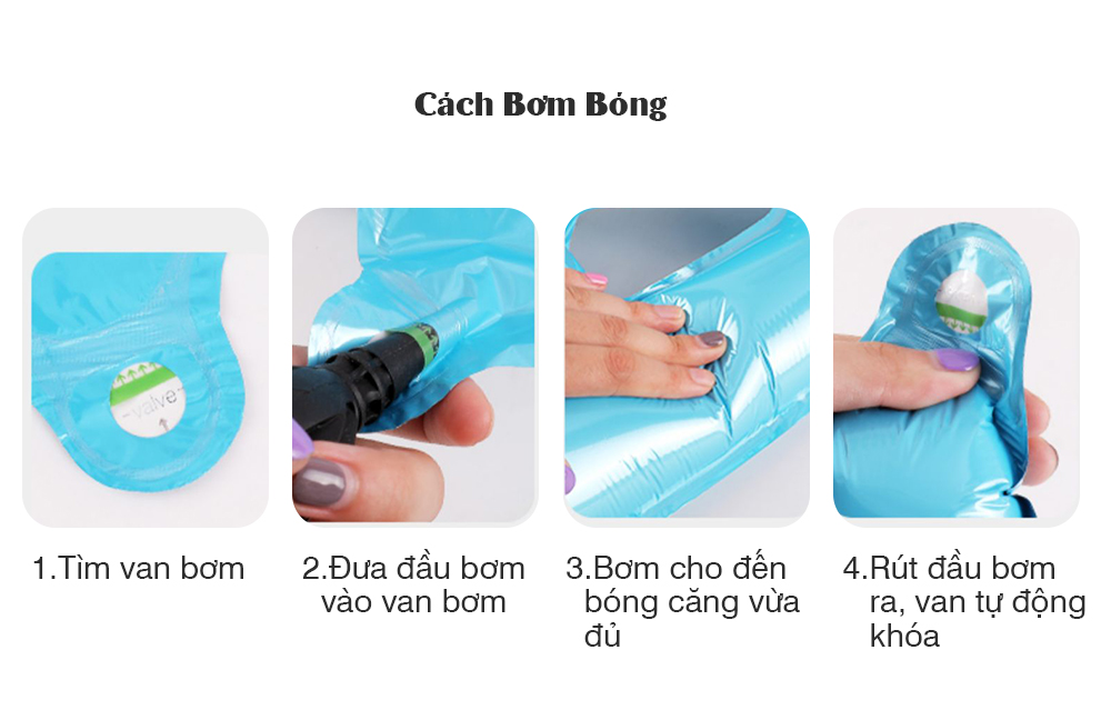 Sản phẩm bán là bóng chưa bơm, quý khách mang về sử dụng làm theo các bước hướng dẫn bên dưới nhé: