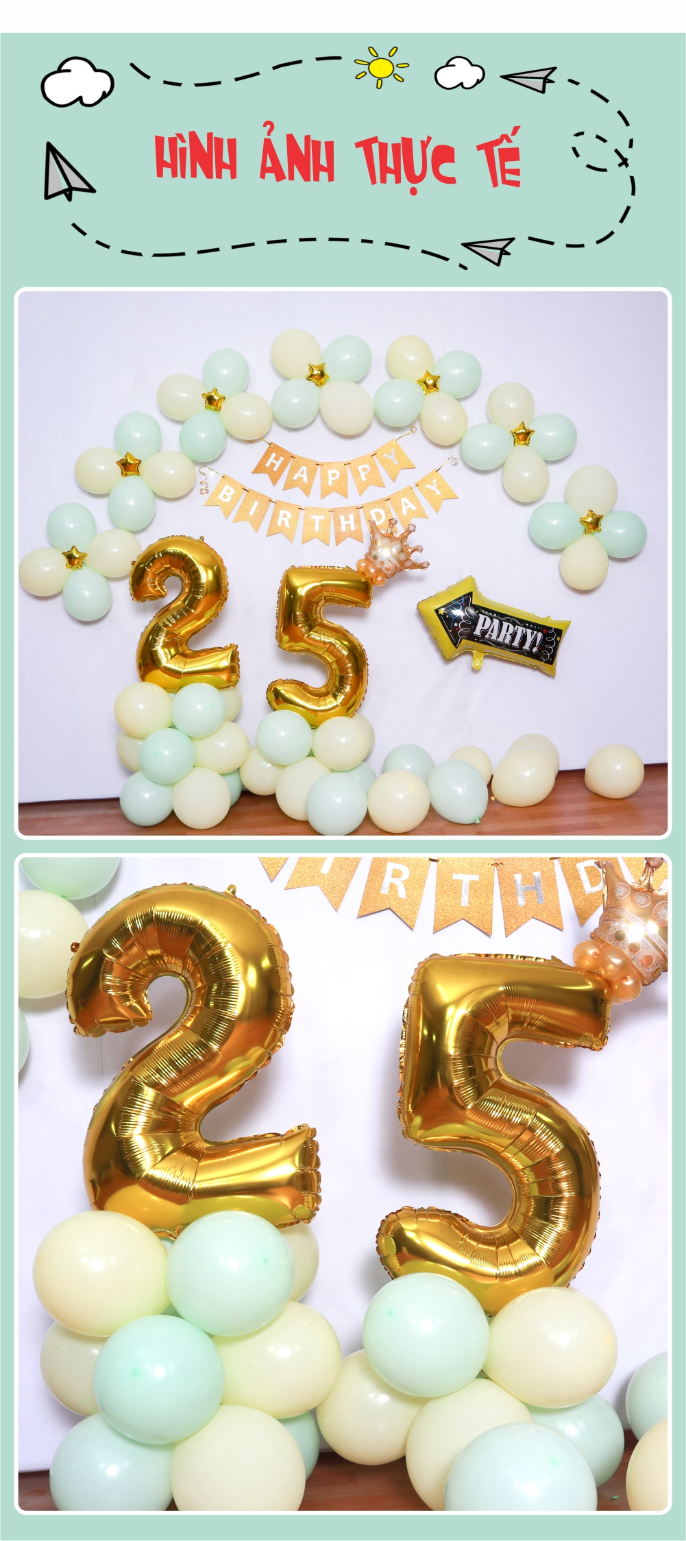 Bộ sản phẩm bong bóng trang trí sinh nhật tuổi 25 dễ thương YBHP-066 gồm có: