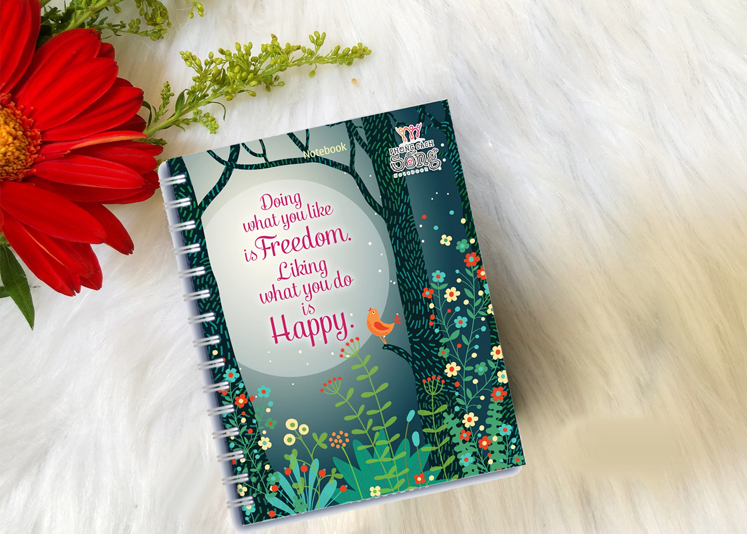 Tiki giao hàng vô cùng nhanh. Sáng đặt mà chiều đã nhận được rồi. Nhìn cào bìa ngoài là thấy mát với cây cối rồi, còn có một câu nói thấy rất hay - đó giống như là một phương châm sống. Có mùi thơm nhẹ không gây khó chịu. Giấy trắng không có dòng kẻ tha hồ cho mình sáng tạo