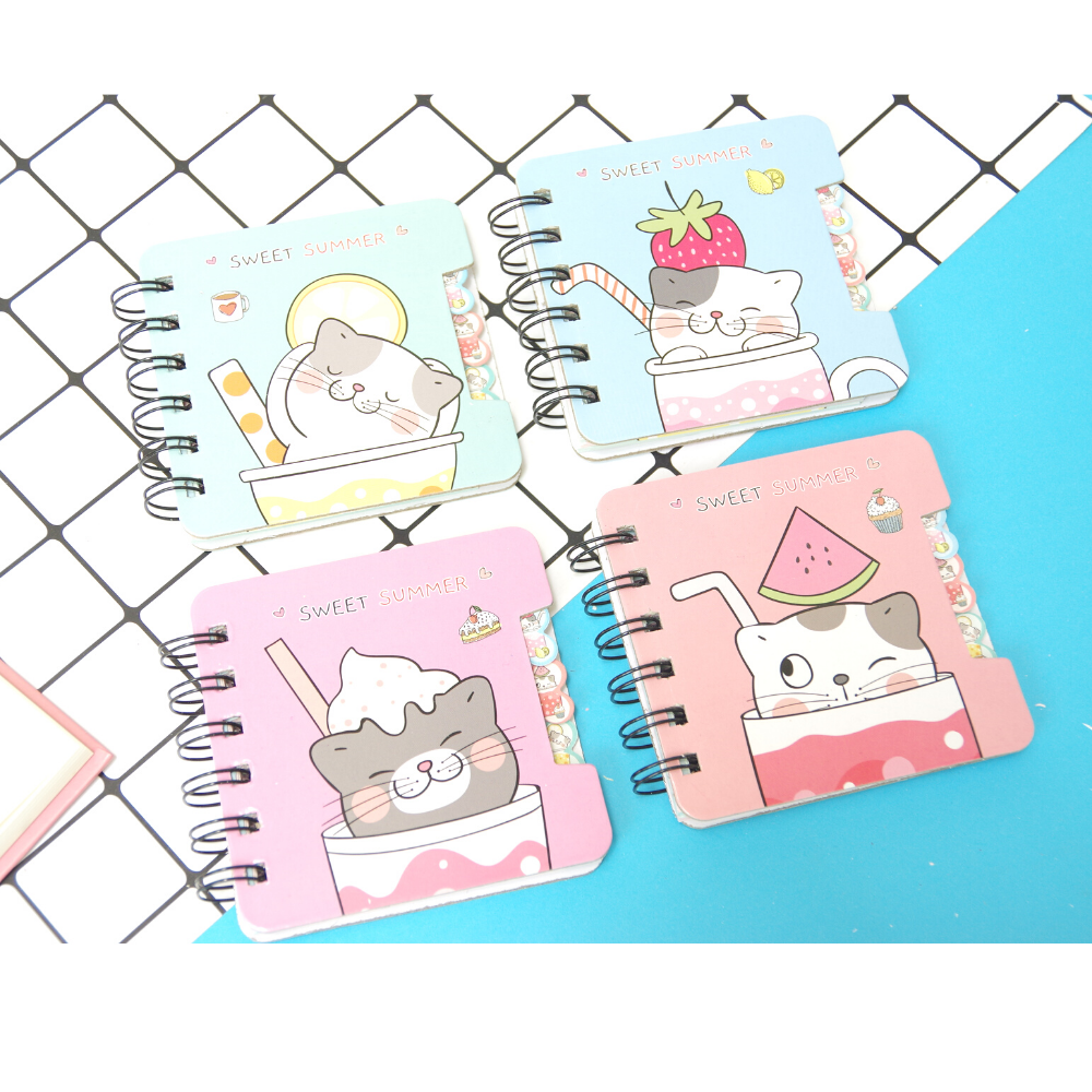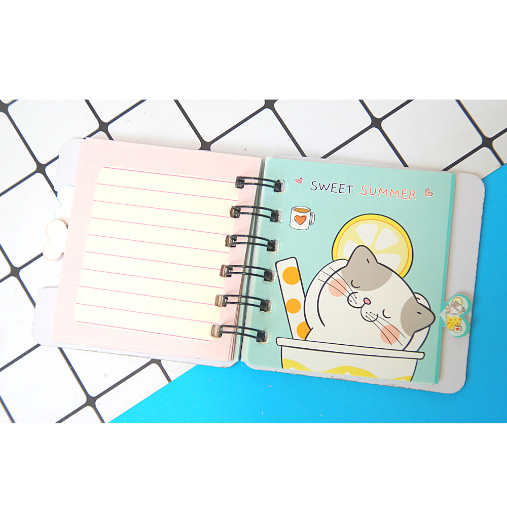 Sổ Tay Ghi Chú Gáy Lò Xo Phân Trang Giấy Nhiều Màu Hình Mèo Dễ Thương Kích Thước 9x10cm